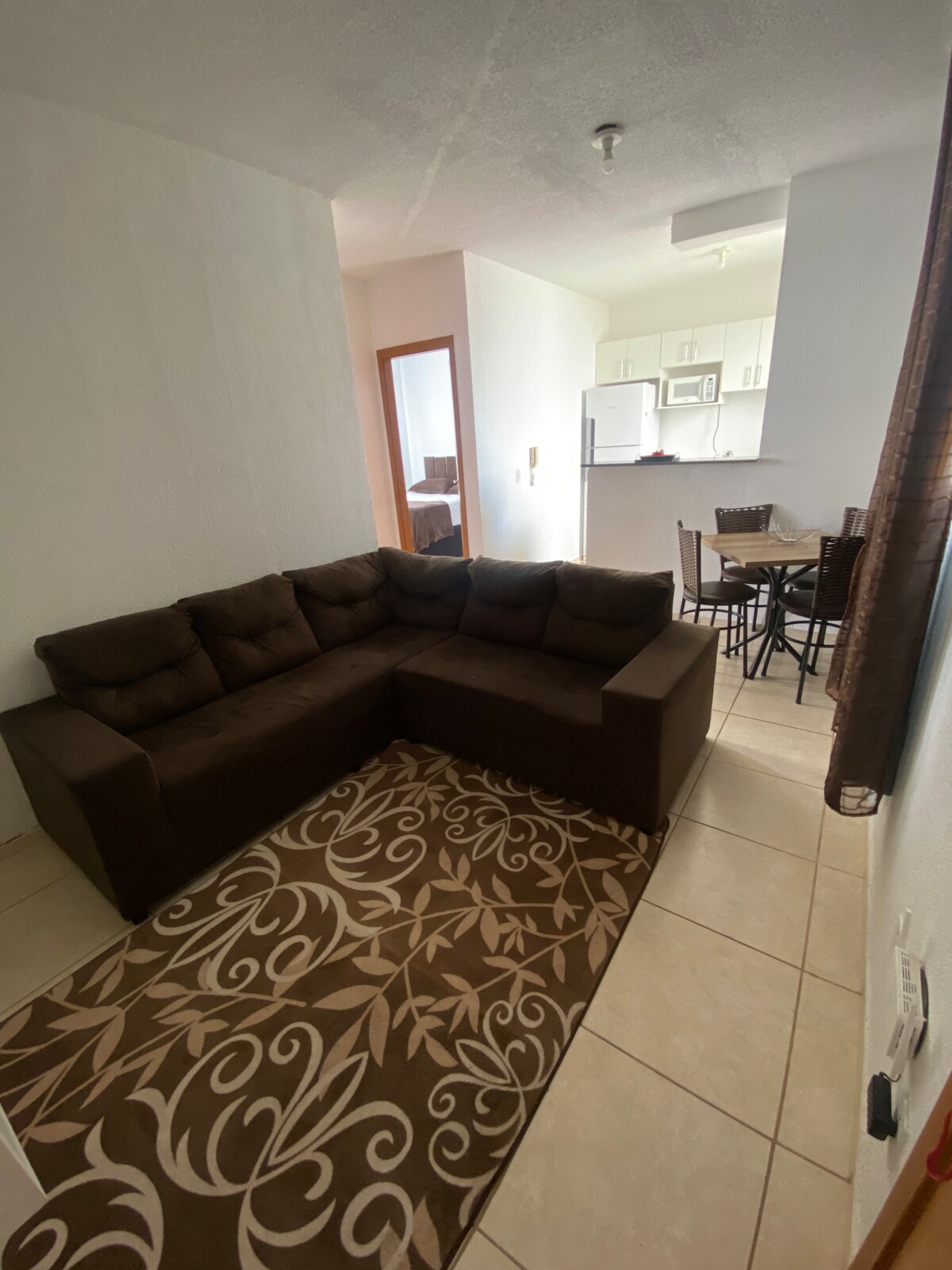 Sobre este apartamento Fechadura eletrônica, Curta estadia, decorado exatamente como nas fotos, dá para hospedar até 4 pessoas . Utensílios doméstico básicos para que vc possa cozinhar,fogão , microondas , maquina lavar roupas, roupas de cama, guarda roupa , TV , sofá e uma cômoda ! Todas as janelas são teladas . Possui uma ótima localização, supermercados, segurança 24 no condomínio, o apartamento fica no térreo e temos vaga para carro dentro do condomínio do apartamento , bairro é tranquila .