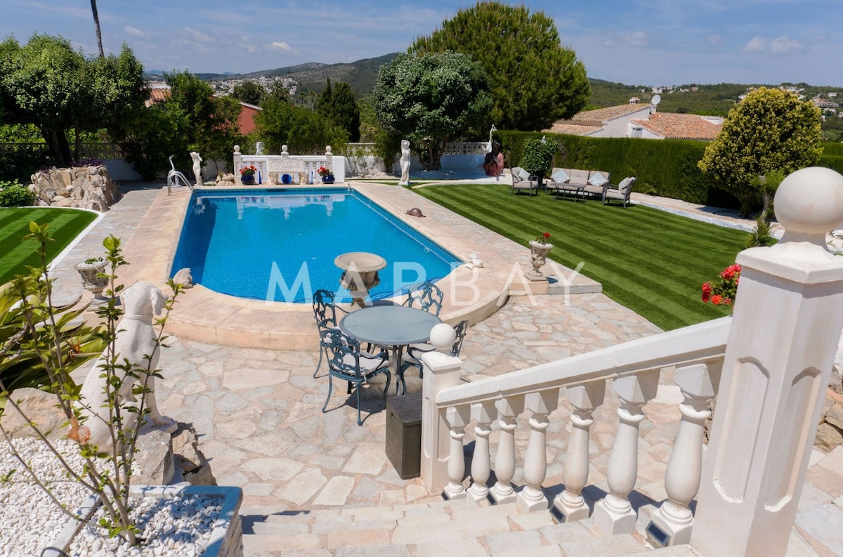 En este alojamiento se respira tranquilidad: ¡relájate con toda la familia! Chalet independiente privado. Totalmente nuevo, esta casa está pensada y diseñada para el mejor confort y con todos los detalles de primera calidad, muy bien decorado con terraza cubierta, cocina exterior,barbacoa,piscina con jacuzzi y parking privado. A 2 minutos un parque para niños y a 15 minutos andando de supermercados y playas. Muy cerca de las mejores calas de Jávea,restaurantes y rutas de senderismo