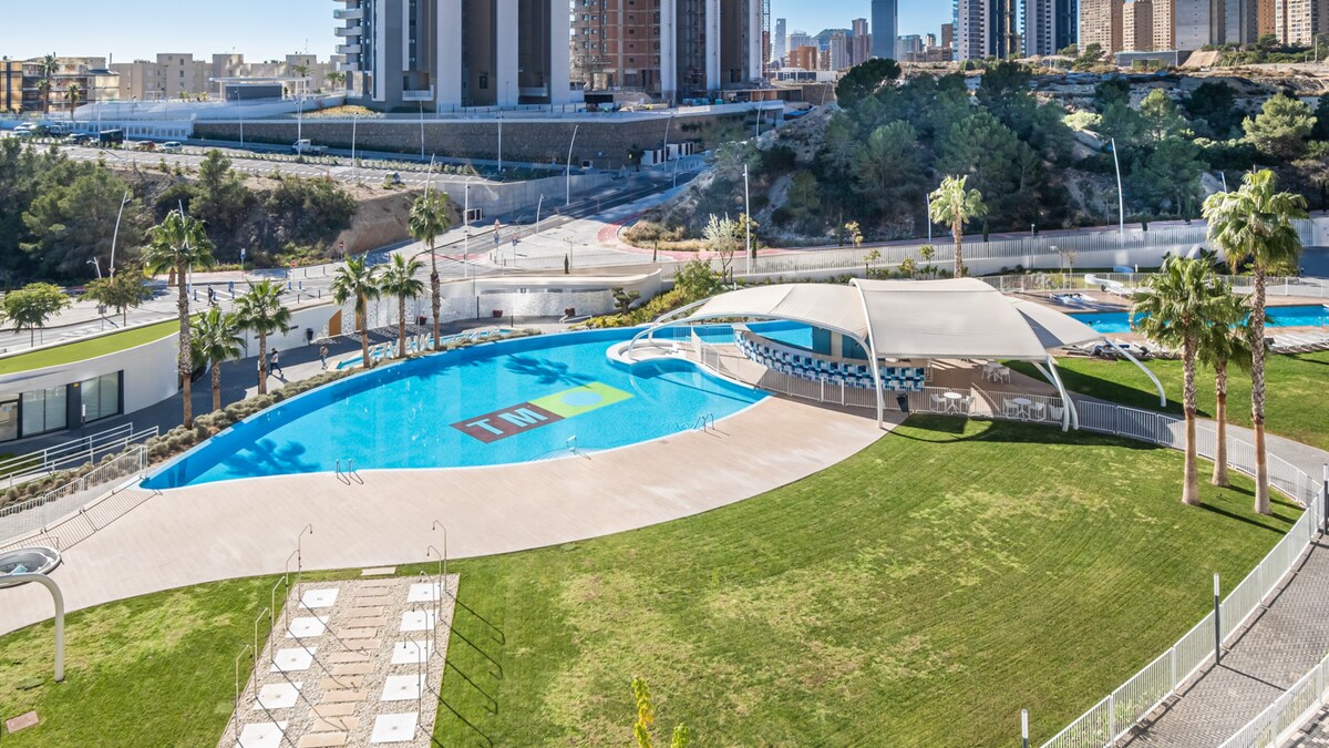 Apartamento con piscina, junto a la playa y centro