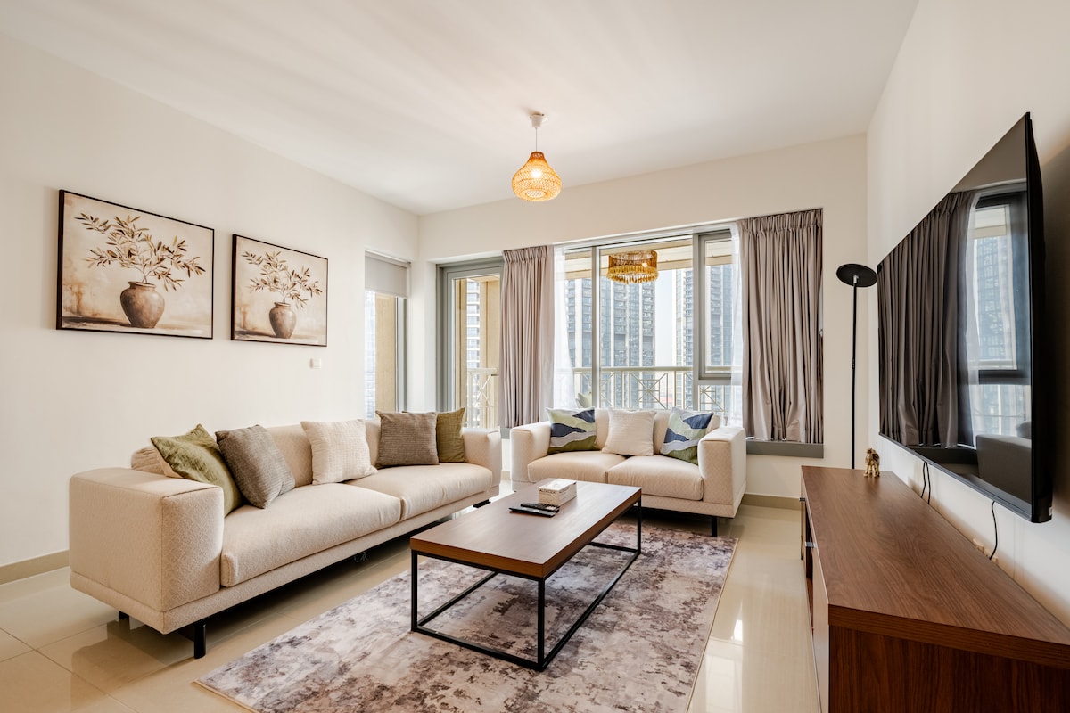 🏖️ Prime Location in JBR Near 🚇Metro, 🚌 Transport & 🛍️Mall 🏡 perfect for families & large groups 🍽️ Fully Equipped Kitchen 🏊♀️ Pool & 🏋️Gym Our apartment is just a 3-minute walk to the beach, perfect for sun☀️, sand and beach🏖️ lovers! 🛏️ Spacious 2-Bedroom Apartment which comfortably accommodates up to 9 guests 💻Work & Stay Connected Enjoy a dedicated working desk 👶 Baby cot & High chair for little ones! 🎬Roxy Cinema is just a short stroll away for a movie night in JBR🍿