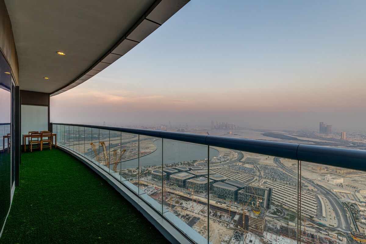 ✦ Luksuzni apartman na 67. spratu sa 2 spavaće sobe u DAMAC Heights sa velikim bračnim krevetom, spavaćom sobom sa francuskim krevetom, kaučem na razvlačenje, 3 pametna TV-a, Netflix/Prime/Disney+ i privatnim balkonom sa pogledom na more, palmu i Atlantis. ✦ Samo 7 minuta hoda do šetališta Dubai Marina i tramvajske stanice Marina. ✦ Pogodnosti: bazen, teretana, sauna, bioskopska sala, konsijerž, parking i obezbeđenje 24/7. ✦ Koraci do restorana i osnovnih sadržaja: Ritzi Italian, Café Bateel, Spinneys i Carrefour u blizini. ✦ Idealno za porodice, parove i poslovne putnike koji traže smeštaj u Marini visokom spratu.