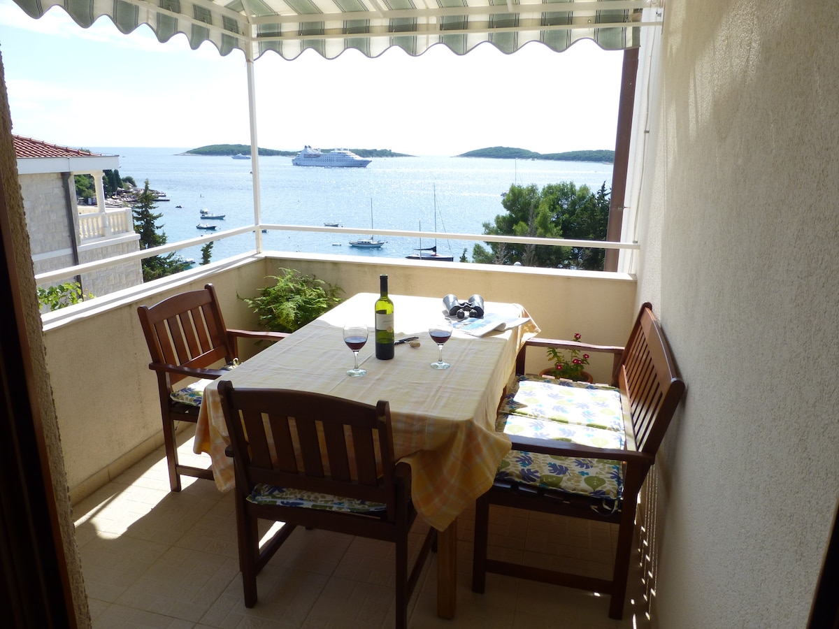 Novouređeni penthaus u centru grada Hvara sa pogledom koji oduzima dah. Nalazi se odmah iznad hvarske luke u mirnom kvartu, na samo 5 minuta hoda do najbliže plaže, supermarketa, restorana i noćnog života.