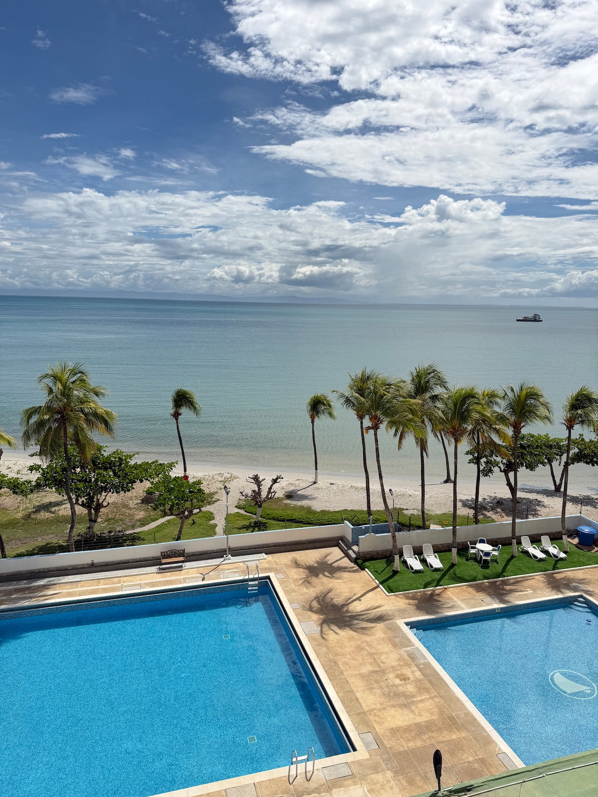 Wake up to panoramic Caribbean bay views in El Morro! 3 bedrooms with private baths, huge balcony for sunsets & cocktails, 2 pools, gardens, 24h security & 2 private covered parking spots. Steps from Wyndham Hotel, beach clubs, restaurants & water sports. Playa Concorde, Laguna El Morro & La Caracola Beach nearby. Comfort, style & tropical vibes for 8 guests, water 24/7 in the flat & power backup for just the building. Exclusive oasis for unforgettable Caribbean memories!