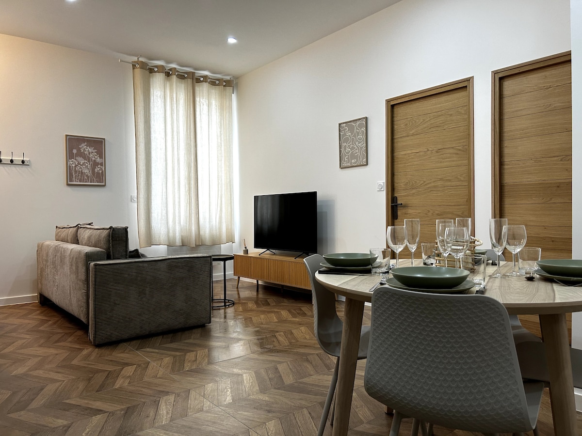 Uživajte u mirnom i autentičnom boravku u gradu Sezanu. U centru grada možete da posjetite grad pješke bez vožnje automobilom. Nedavno modernizovan dom uz zadržavanje šarma starog. 2 spavaće sobe, 1 kupatilo, 2 toaleta, dnevni boravak odvojen od trpezarije sa sofom na razvlačenje i 1 otvorena kuhinja. Kao i mala terasa za pauze za cigarete. Na licu mjesta, Fiber Wi-Fi Box + TV Box