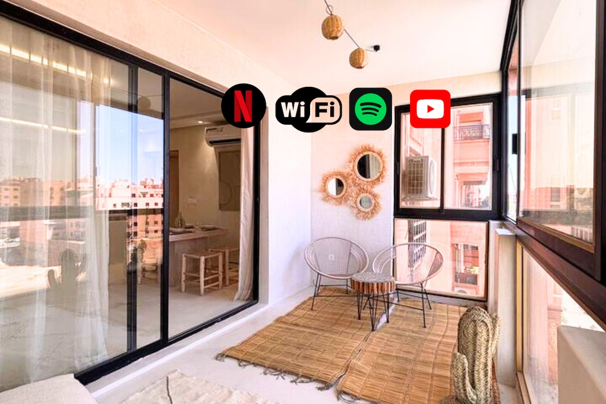 Boravite u srcu Marakeša u našem dvosobnom apartmanu sa 2 kupatila. Uživajte u vrhunskoj posteljini Simmons, brzom Wi-Fi mreži (optičkim vlaknima) i modernom uređenju sa privatnim bazenom. Potpuno opremljena kuhinja, elegantna kada i italijanska tuš-kada. Kratka šetnja od trga Jemaa el-Fna, Plazza i Carré Eden. Bazen nije zagrejan. Napomena: Neoženjeni marokanski parovi nisu dozvoljeni.