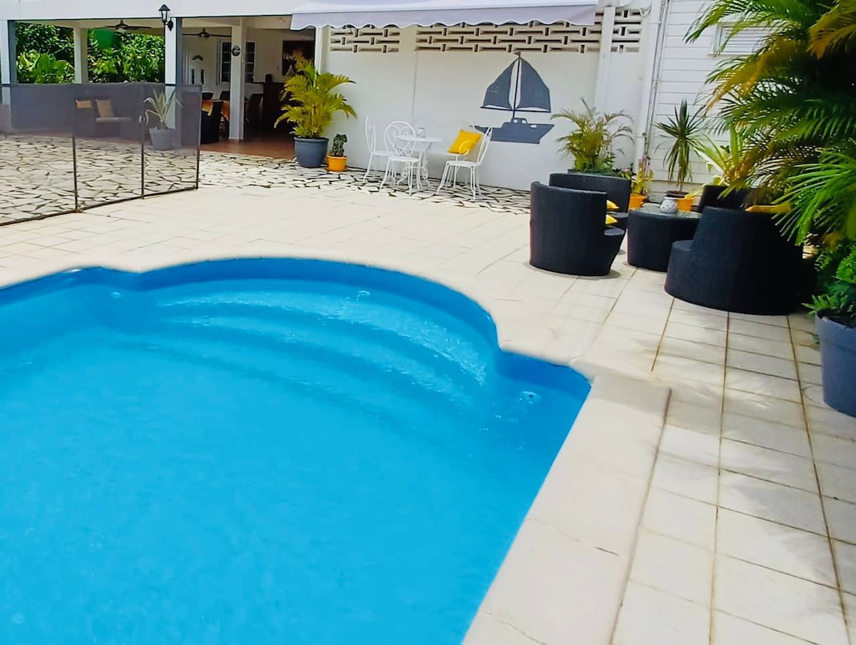 Nema ŽURKI. F2 sa bazenom , blizu aerodroma. Dno cele vile za turiste i poslovna putovanja, Wi-Fi. 10 minuta od L'Aéroporta, 15 minuta od Pjer Zobda Quitman, 12 minuta od Fort de Fransa , u blizini Mangot Vulcina, IMS-a i glavnih područja za aktivnosti na ostrvu. 1 tržni centar 400 m peške, pošta, pekara, bankomat 200 m hoda . Iskoristite polaznu tačku za plaže i aktivnosti na jugu i severu ostrva. Zatvoreni parking