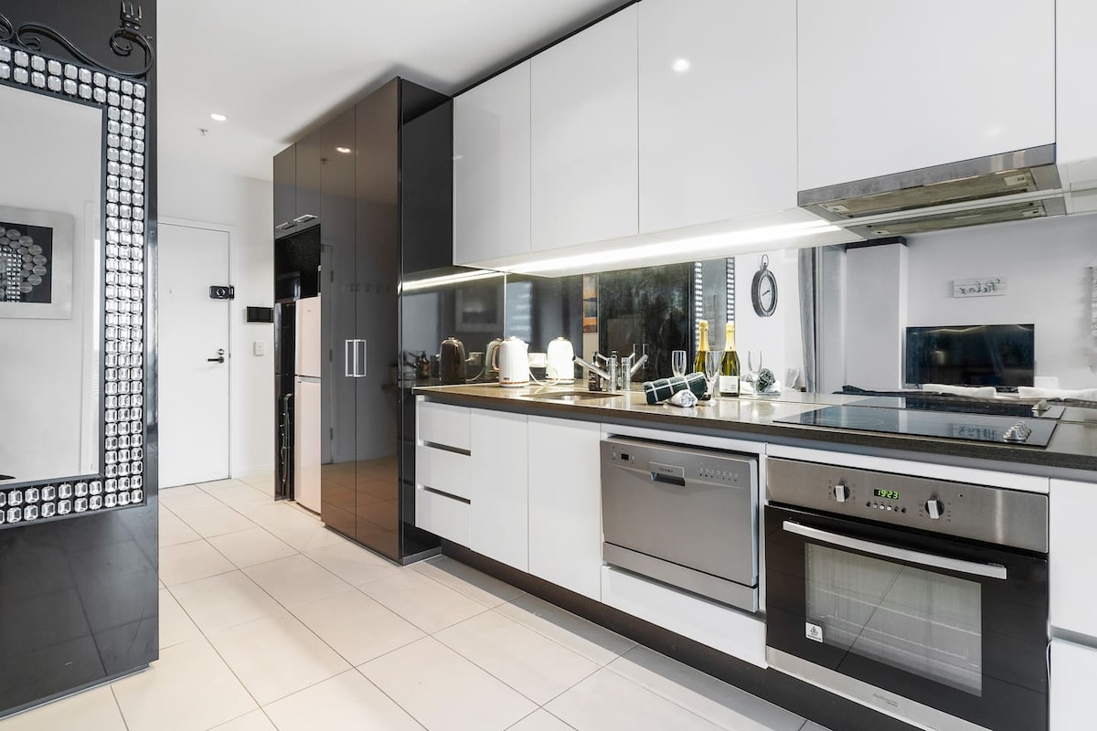 At the Docklands edge of the CBD, this apartment provides all the comforts of home and is prepared for ‘longer-stay’ guests; 65” TV and Apple TV unit, washer/dryer, etc. Walk to:- CBD, Southern Cross Station, Skybus, Marvel Stadium, Melbourne Convention/Exhibition Centre, South Wharf DFO, Ferry Terminal and a multitude of restaurants and cafes. Direct tram route to:- MCG, Rod Laver Arena, AAMI Park, Grand Prix circuit.