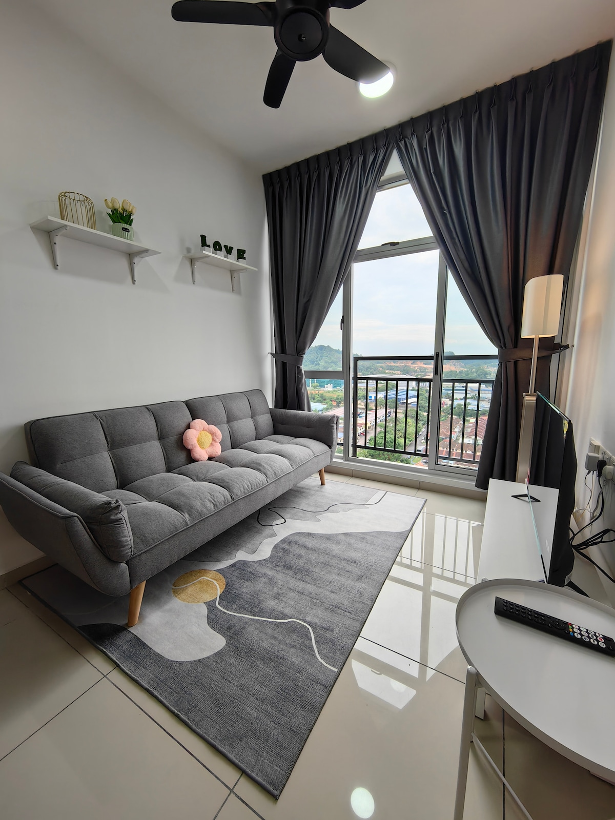 This is a spacious 2Bedroom unit perfectly fit for guests up to 5 pax with total of 1 king size bed 1 queen size bed 1 single bed High floor with high view. 1. Basketball Court 1. Gym Room 2. Function Hall 3. Lounge 4. Library 5. Manicure Shop 6. Mini Theatre 7. BBQ Deck 8. Swimming Pool 9. Sauna 10. Jacuzzi 11. Game room (Pool Table, PS Room, Darts and more) 12. Laundry 13. Mini Market -Sky Garden Guest are not allow to smoke in the room , please smoke at the balcony if needed