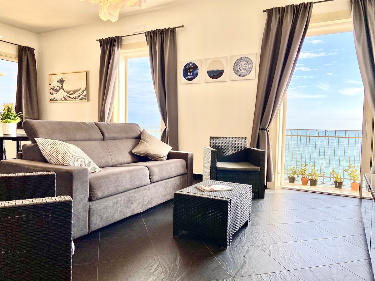 Prelep apartman sa pogledom na more i sa pogledom na Amalfijsku obalu koji oduzima dah. Dizajnerski nameštaj sa odličnim estetskim efektom u prostoru sa mnoštvom pogodnosti gde ćete naći apsolutno sve što vam je potrebno. Možete da izađete iz kuće u papučama i da zaronite pravo u more. Uz pogodnost bezbednog parkiranja automobila (ili motocikla) u garaži, dostupnoj direktno iz zgrade i sa automatskom kapijom. Napomena 65 EUR se plaća na ulazu za čišćenje. SAMO GOTOVINA.
