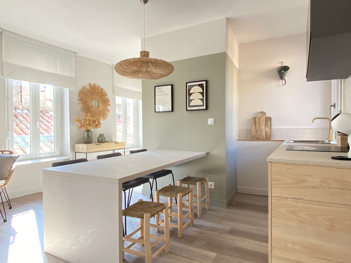 Tražite trenutak blagostanja i opuštanja? Došli ste na pravo mesto! Idealno smešten u centru grada u centru grada, ovaj stan ima sve elemente koji će vam omogućiti da provedete prijatan boravak. Jacuzzi za 2 osobe, luksuzna posteljina, vrhunski OLED TV, Nespresso aparat za kafu, opremljena čajna kuhinja i obrok… Imaćete sve elemente da biste se lepo proveli.