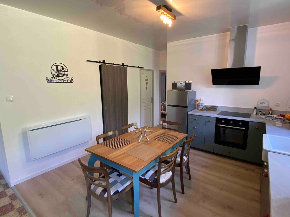 Nalazi se u Ainu, u Arboys-en-Bugeyu, blizu Bellija. Ugao mira i opuštanja između jezera i planina. Naša seoska kuća kombinuje modernu i autentičnu stranu stare prodavnice uzdusta. Uživaćete u veoma velikom prostoru iznutra i spolja. Ima kapacitet od 1 do 16 osoba sa dnevnim boravkom većim od 60m², 3 spavaće sobe i 2 kupatila. Seoska kuća se nalazi pored naše kuće, ali ne i preko puta. Ulaz i parking su nezavisni.