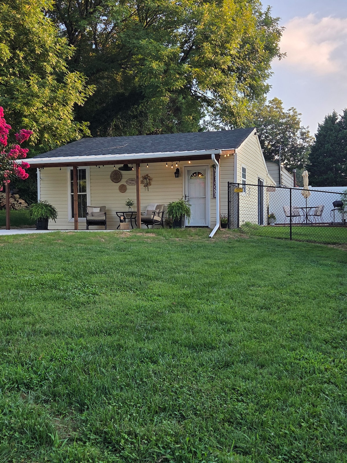 Opustite se u našoj udobnoj 1 spavaćoj sobi, samostalnoj gostinjskoj kući od 480 kvadratnih stopa, samo 15 minuta od Međunarodnog aerodroma Šarlot i 25 minuta do centra Šarlote. Nekoliko minuta do koledža Belmont Abbey, centra Belmonta i Mt. Holi. Uživajte u kuvanju u punoj kuhinji, roštiljanju na terasi ili pijuckanju kafe na natkrivenom trijemu. Savršeno mjesto za miran odmor dok boravite u blizini živahnih restorana, parkova i aktivnosti.