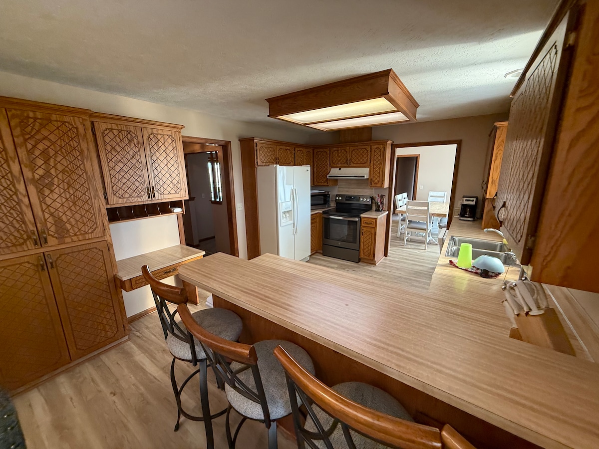 A rustic farmhouse retreat on a crop producing farm, which means we could be planting or harvesting during your stay. Ellington Place has a furnished kitchen, updated bathroom and washer and dryer. Along with excellent outdoor entertainment, complete with a fire pit, porch for sitting and open area for short walks. The property is located 25 minutes from the Omaha metro area as well as less than 10 minutes from the Wabash Trace, a bike trail that travels through Mills County.