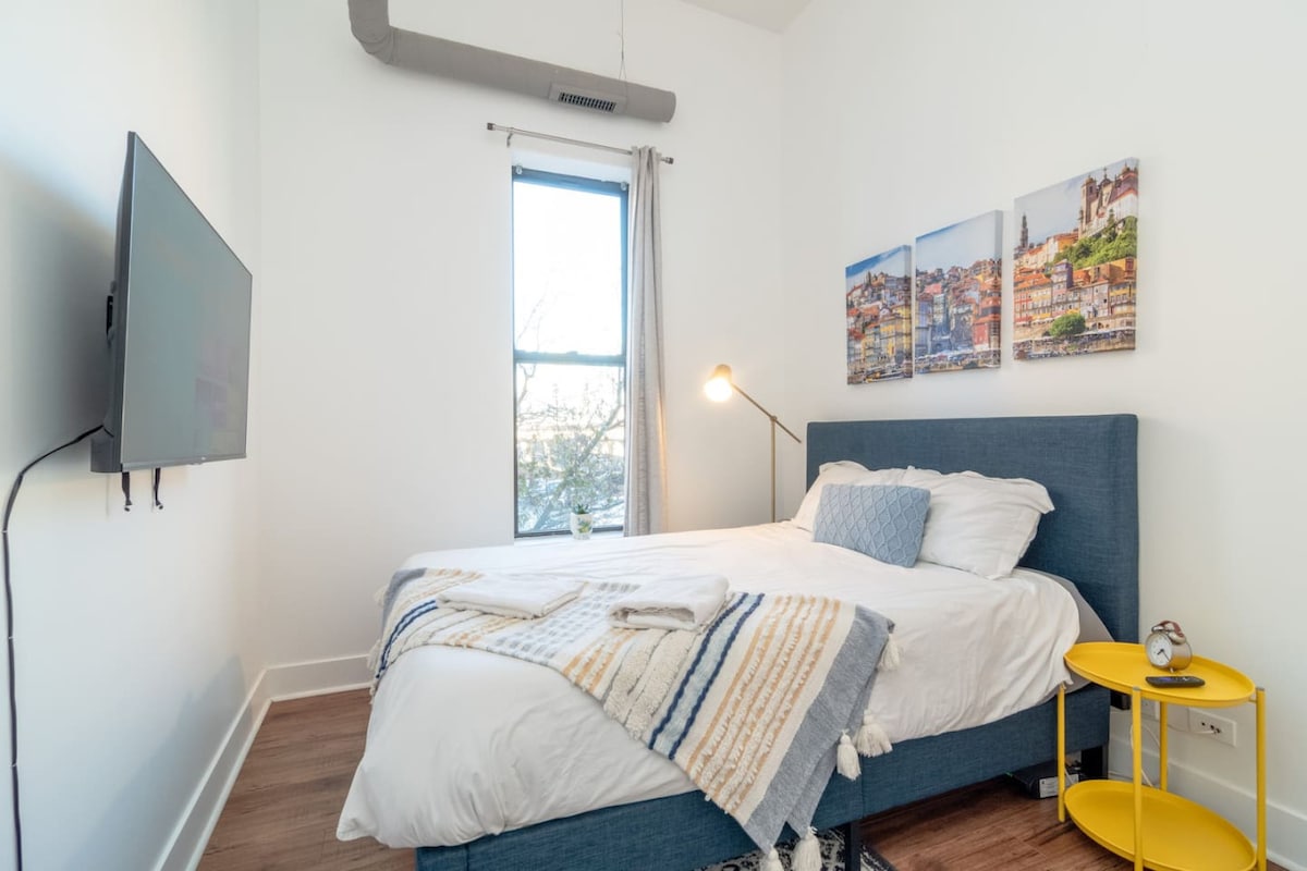 Uživajte u ovom zabavnom i jedinstvenom kupatilu sa 1 krevetom od 1,5 kupatila u srcu okruga Bronzevil u Čikagu. Ova umjetnička atmosfera ima eklektičan dekor, ručno oslikane murale, pametne televizore, mokri bar, velnes studio, prostor za rad na daljinu, besplatan parking na ulici i pristup u prizemlju. Ovaj udoban prostor je savršen za zabavne parove za parove, solo avanturiste, poslovne putnike, poslovne putnike i ljubitelje igara. Jednostavan pristup centru grada (6 milja do Mag Mile, Navy Pier, Millennium Park), plaže (1 milja), muzeja i sportskih arena.