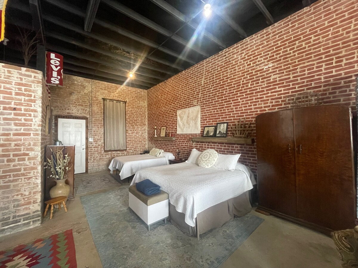 Naš jednosobni Hejloft ima nevjerovatan panoramski pogled na selo Teksasa sa balkonima sa svake strane stana. Otvoreni dnevni boravak i blagovaonica sa čajnom kuhinjom za večere za dvoje ili do 4 dodatna gosta. Predivan starinski namještaj za spavaće sobe savršen za vaš poseban dan. Slobodno ponesite fotograf kako biste se fotografisali u konjušnicama i terenima za konje. Možemo da organizujemo da jedan od naših predivnih konja bude na fotografijama ili da se provozamo.