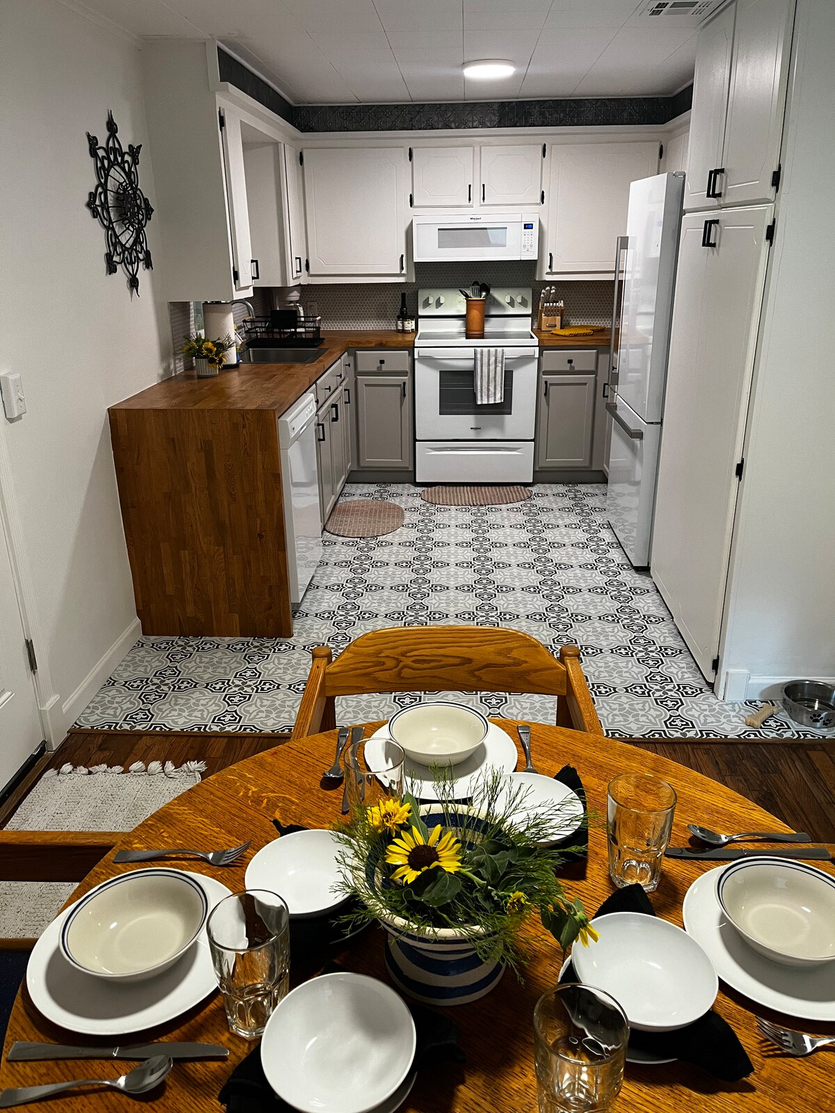 Welcome to Native Sun in Medicine Park! This unit has been a family favorite and is located above our private garage in the heart of Medicine Park. Decked out in Native American style with a deck to enjoy coffee in the morning or sunsets in the evening. Small kitchenette w/ two burner range and Toshiba Microwave Air Fryer Oven combo can accommodate small cooking needs. Full bathroom with tub, smart TV, and WiFi are just some of the amenities you will enjoy during your stay. NOT PET FRIENDLY