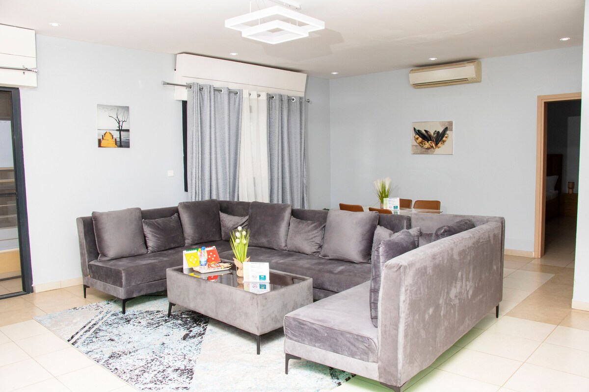 Bienvenue à Bô Séjour votre appartement cosy et climatisé, situé à la cité Africa, juste à 5 minutes de la plage de Ouakam. Niché dans un quartier résidentiel rare de la capitale calme et sécurisé. Cet appartement soigneusement décoré vous offre la chaleur de l’hospitalité sénégalaise avec le confort moderne. Proche du Monument de la Renaissance et du Phare des Mamelles, idéal pour couples, voyageurs et nomades digitaux en quête de style, calme et connexion.