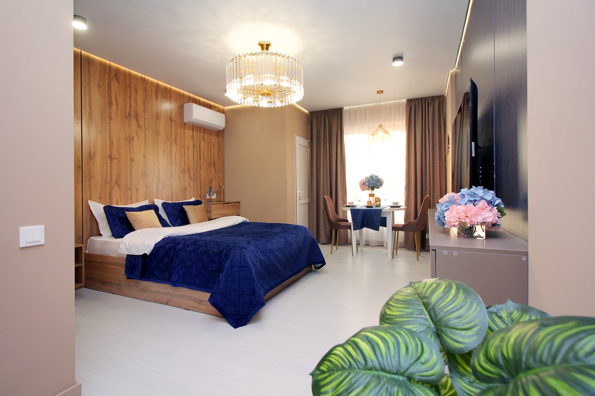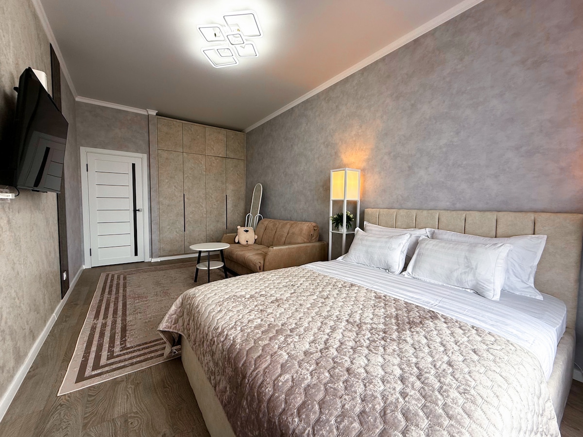 Мы приглашаем в нашу новую , стильную студию с интерьером в стиле Джапанди и системой фильтрации воздуха. В нашей квартире всегда свежий воздух - без смога и пыли, что очень актуально для Алматы. Что вас ждет: - Удобная кровать с премиальным матрасом. - Натуральное постельное белье, полотенца, одноразовые гигиенические принадлежности - Просторная душевая, стиральная машина с сушкой. - Смарт-ТВ, мини-бар, чай, кофе. - Рядом торговый центр, рестораны, кафе, аэропорт. - Говорим на английском.