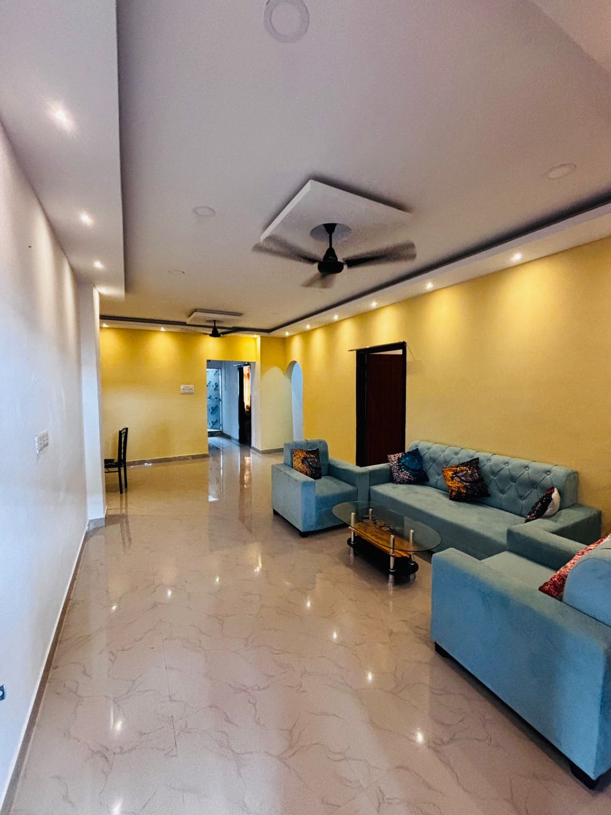 Step into a warm and thoughtfully designed 2BHK retreat in Shillong, styled with soft earthy tones, handcrafted wooden furniture and cozy boho accents. The apartment offers a spacious living room, serene bedrooms with hotel-style bedding and a charming dining nook with a live-edge wooden table. Soft lighting, curated décor and peaceful surroundings make this the perfect space to relax, unwind and feel completely at home. Perfect for couples, families or anyone seeking a peaceful mountain escape.