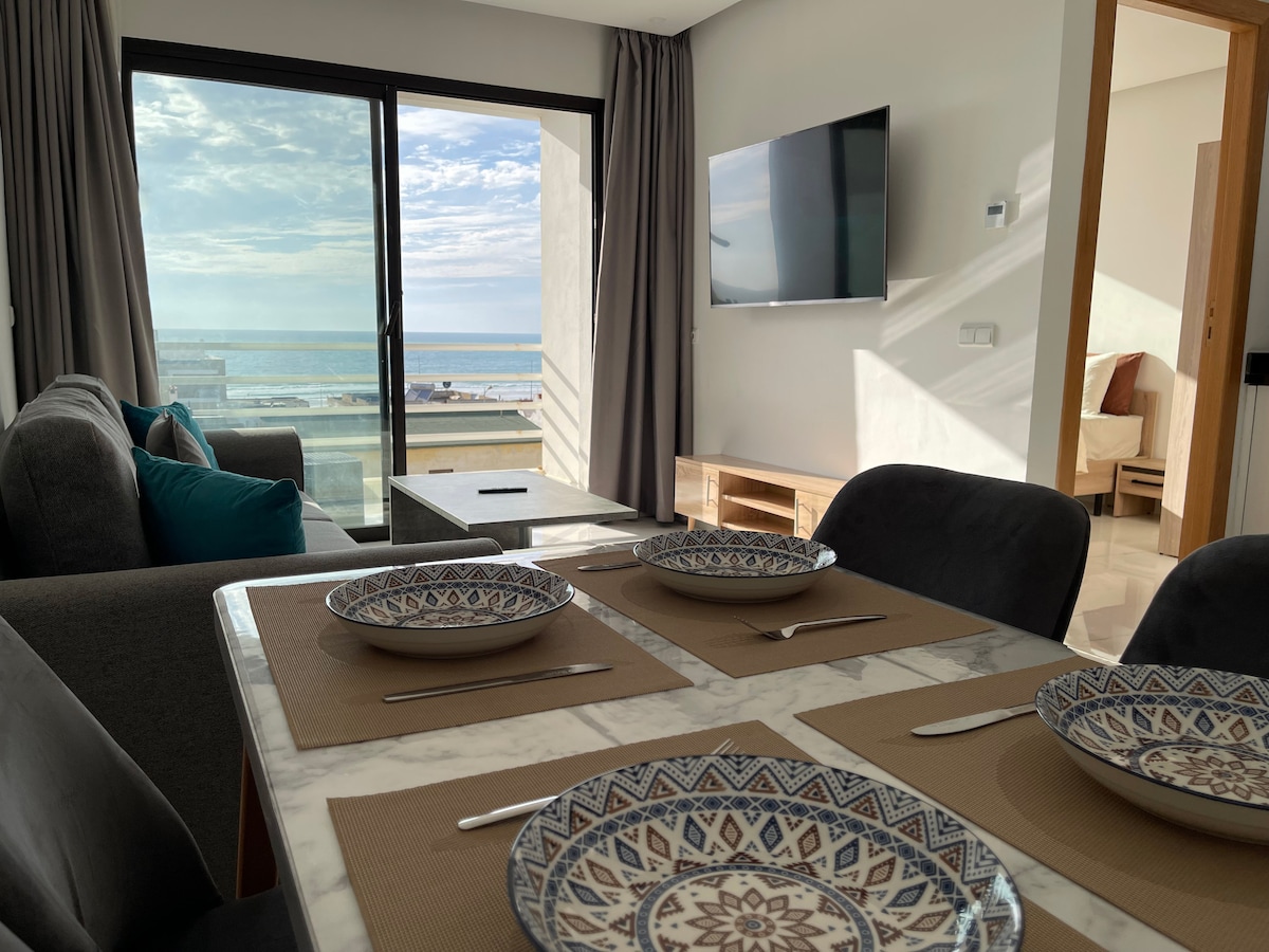 Uživajte u klimatizovanom stanu s pogledom na more, samo 6 minuta hoda od plaže Mehdia. Odlično mjesto za boravak uz Netflix i međunarodne TV kanale. Optički Wi-Fi od 100 Mbps. Postoji mogućnost samostalnog pristupa pomoću koda. Blizu je mnogih usluga kao što su iznajmljivanje surfovanja, teretana, restorani. Istražite prelijepi Nacionalni park Sidi Boughaba Lake u blizini. Ovaj moderni dom omogućava vam da se opustite i uživate u elegantnom okruženju za izuzetan odmor