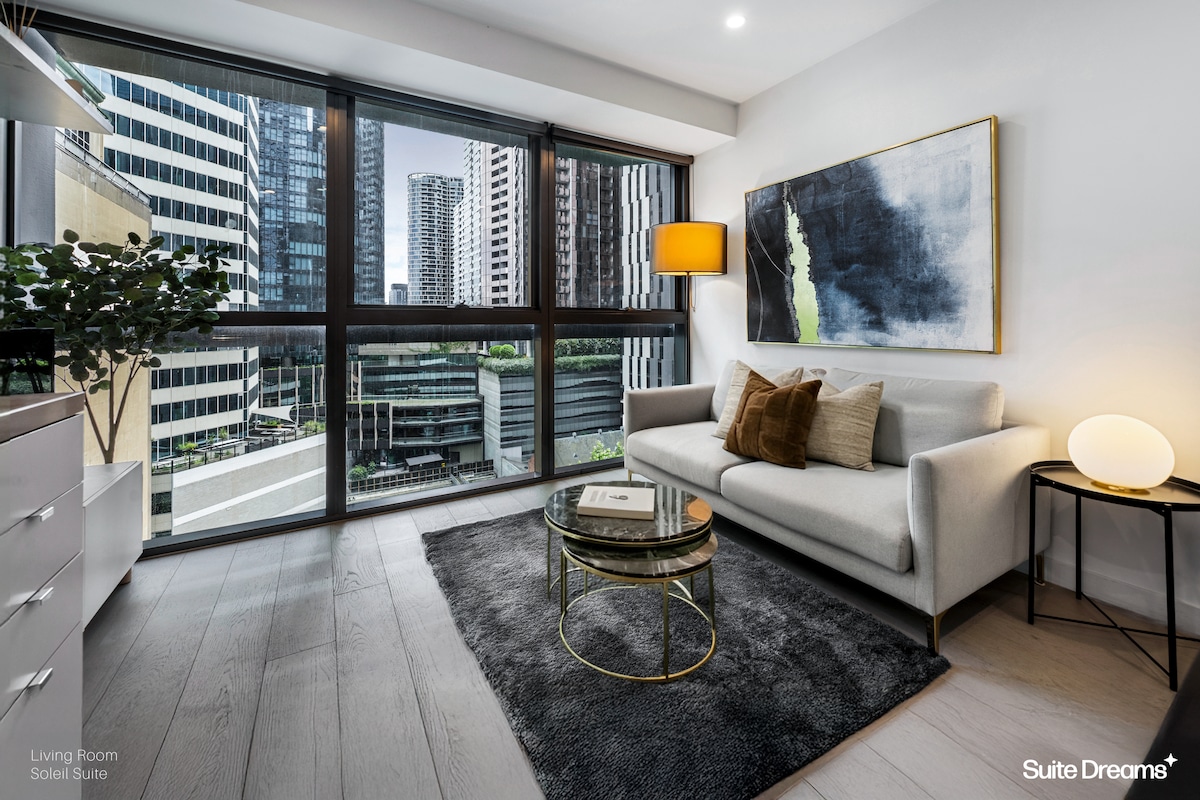 Welcome to Soleil Studio! After a day of discovery, retreat to our cosy Soleil Deluxe Suite, where comfort and style meet. Rest in our studio apartment with a fully-equipped kitchen, and unwind in a comfortable couch - while Netflix and an intimate dining setup await. In Melbourne’s vibrant CBD, a tram stop is at your doorstep, with Melbourne Central, Emporium, and Marvel Stadium only minutes away. Perfect for couples, business travellers, or families seeking city charm.