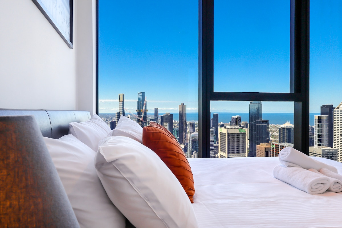 The height of luxury,in the heart of the CBD. Situated in the absolute heart of the city, its shimmering towers will incorporate a variety of residences, all complemented by a selection of ground floor retail and the convenience of having the best of Melbourne on your doorstep. We provide high quality king size bed and mattress, hotel level bedding. Miele brand oven and gas stove. Smart tv and comfortable environment in living room.