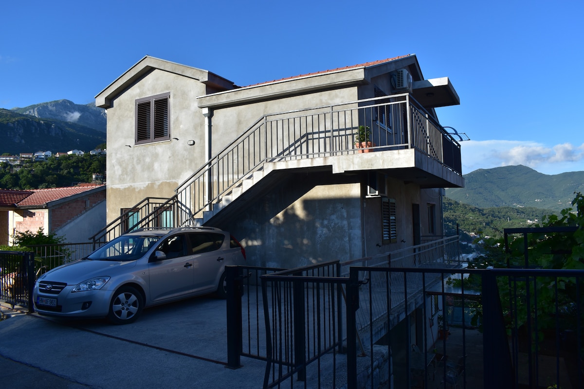Brand new, fully equiped modern apartment in the attic of family house with a beautiful view. Well positioned on Adriatic highway E65. The Old town of Herceg Novi which carries huge historical heritage with old fortresses, churches and squares is just below the appartment, at 5mins walking. Apartment is located in immediate proximity of protected area of "Savinska Dubrava" forest through you can take a walk whenever you want. The beaches are closely located, 850m away walking or 14mins.