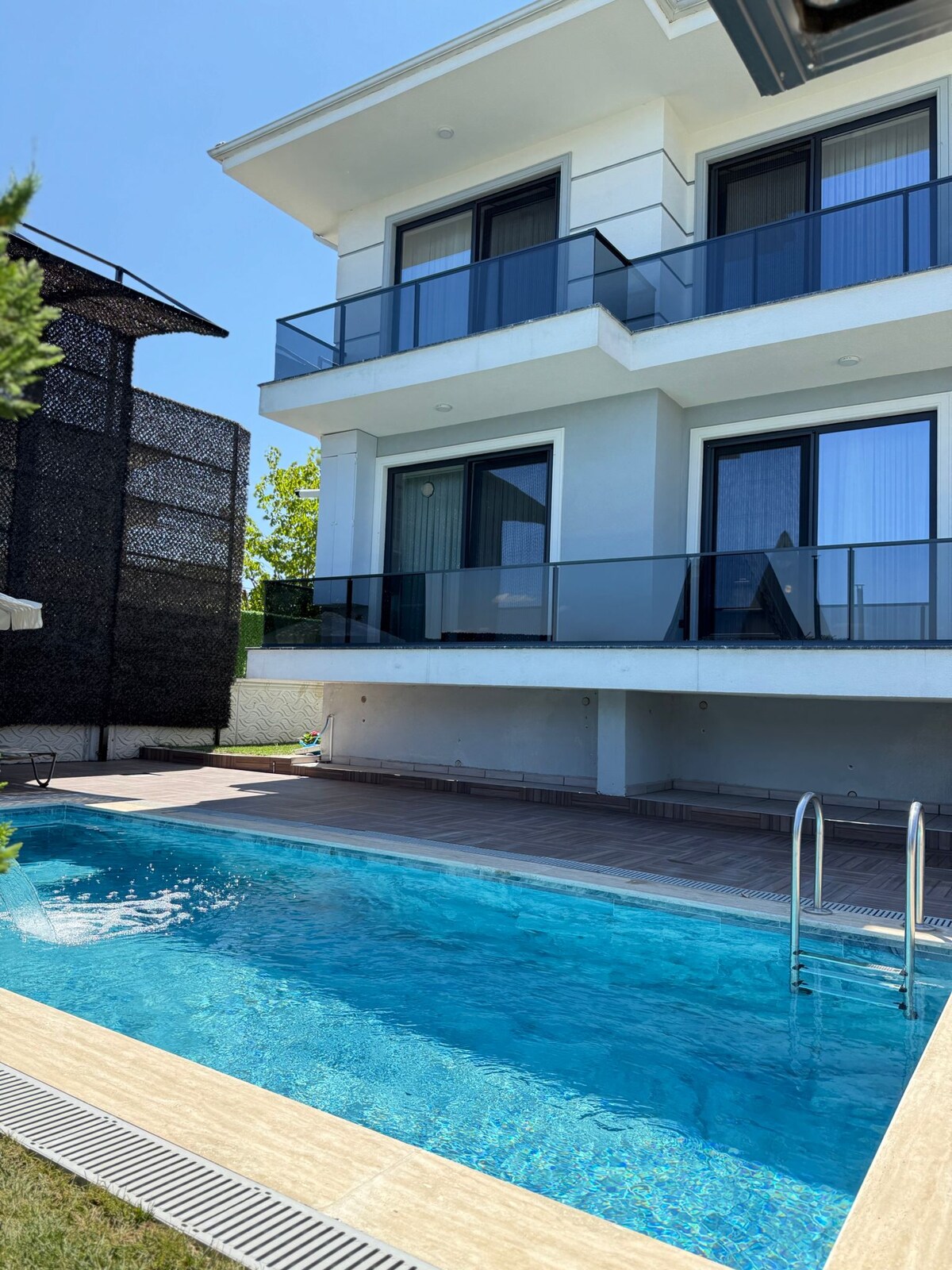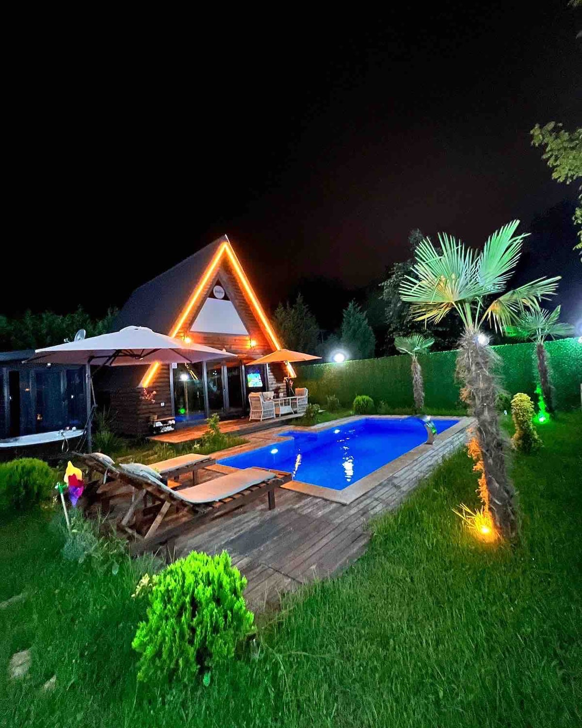 NOT:AİLE VE SADECE BAYAN GRUP KONAKLAMA KABUL ETMEKTEYİZ. 8 kişiye kadar konaklama imkanı,3 ayrı banyo Havuz ölçülerimiz Uzunluk: 6 Genişlik: 2.5 Derinlik: 1.5 Tamamen kapalı SICAK HAVUZ mevcut. çaycı, kahve makinesi, bulaşık makinesı, Ocak, büyük buzdolabı,Geniş jakuzi ve mini Türk hamamı Çamaşır ve kurutma makinesi 3 ayrı klima Yerden ısıtma Saç kurutma, Havlu Takımı, Şampuan, Duş jeli, WİFİ ve Netflix Barbekü, ateş çukuru, Çocuk oyun alanı,trambolin ve daha fazlası Jeneratör ve su deposu