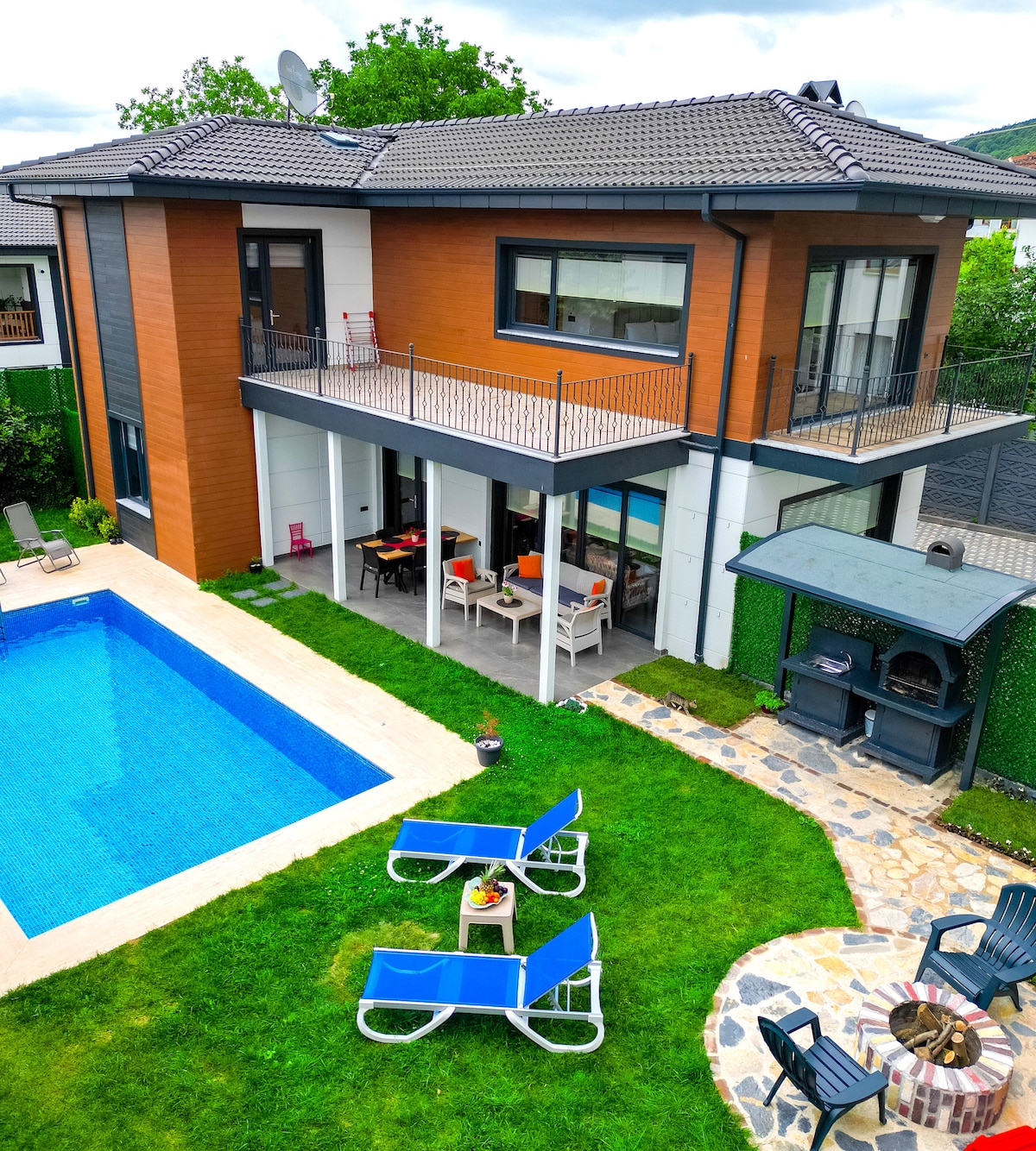 5 yatak odalı villamızda arkadaşlarınızla ya da ailenizle özel havuz, sauna, barbekü ve çocuk parkının tadını çıkarın. Jeneratör ve su deposu ile her zaman konforlu. Eğlence ve huzuru bir arada yaşamak isteyenleri bekliyoruz!