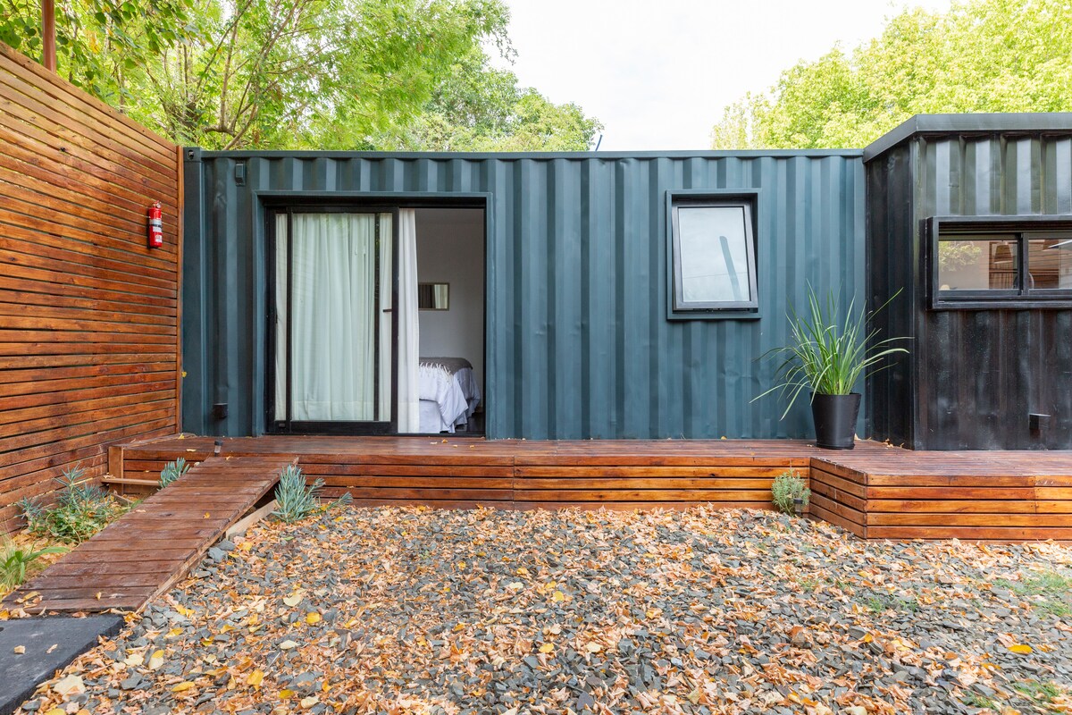 Minijaturna kuća sa bračnim krevetom i čajnom kuhinjom opremljena šporetom, frižiderom i zamrzivačem. Uživajte u pogledu na navoj Potrerillos i planine iz spavaće sobe. Kuća ima kupatilo, mini bazen sa hladnom vodom i privatni roštilj. Funkcioniše sa solarnom energijom, pa je važno da svjesno koristite struju. 8 minuta automobilom od nasipa Potrerillos, 1 sat od ulice Arístides i 30 minuta od skijaškog centra Los Puquios y Penitentes.