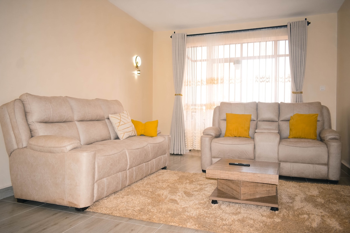 Pobjegnite u ovo mirno i izvanredno opremljeno utočište s 3 spavaće sobe, na samo 10 minuta od gradske vreve. Smješten u mirnom i bezbjednom okruženju, ovaj prostrani smještaj se može pohvaliti sa 4 kreveta, svim spojenim sobama i zajedničkim kupatilom. Uživajte u veličanstvenom pogledu na jezero Nakuru s balkona, sjenici za opuštanje, roštilju i otvorenom prostoru u kojem se djeca mogu igrati. Uz danonoćnu bezbjednost, udobnost se ovdje spaja sa spokojem! Dođite i opustite se sa cijelom porodicom.
