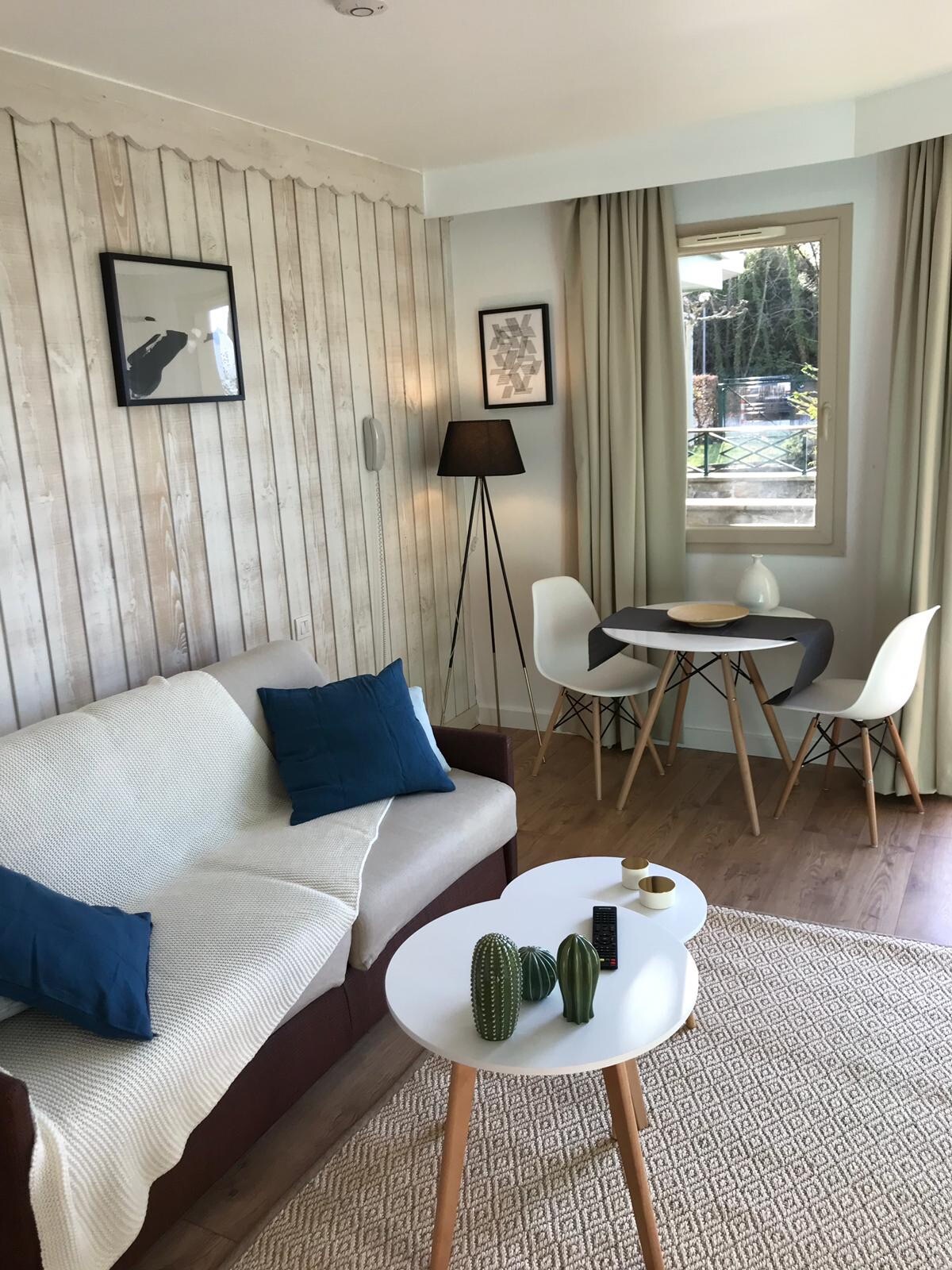Studio je idealno smešten u centru, u srcu Viil Ansi. Potpuno renoviran: veoma dobro opremljen, udoban i funkcionalan. U mirnoj rezidenciji na trgu ispred kanala. 5 minuta od železničke stanice i jezera. 2 sobe: glavna soba sa prostorom za spavanje i opremljenom kuhinjom i modernom tuš kabinom. Noćna strana: veliki krevet sa 2 sedišta je nov i veoma udoban sa televizorom sa ravnim ekranom ispred. Kuhinja je namještena i vrlo dobro opremljena. Pristup internetu: Wi-Fi