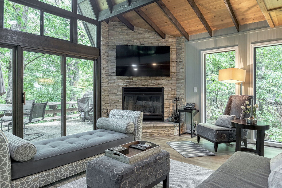 Dobro došli u našu prelijepu luksuznu brvnaru u šumi - više od smještaja, to je nezaboravan doživljaj. Smješten na 9 privatnih hektara, ovaj smještaj inspirisan skandinavskim stilom po mjeri nudi savršen spoj udobnosti i avanture. Iako objekat ima samo još jednu brvnaru za goste u blizini, nema ZAJEDNIČKIH SADRŽAJA, što vam osigurava potpunu privatnost tokom boravka. Brvnara se nalazi u blizini parka Onondaga State Cave Park, rijeke Meramec, plutajućih putovanja, vinarije i lokalnih restorana.