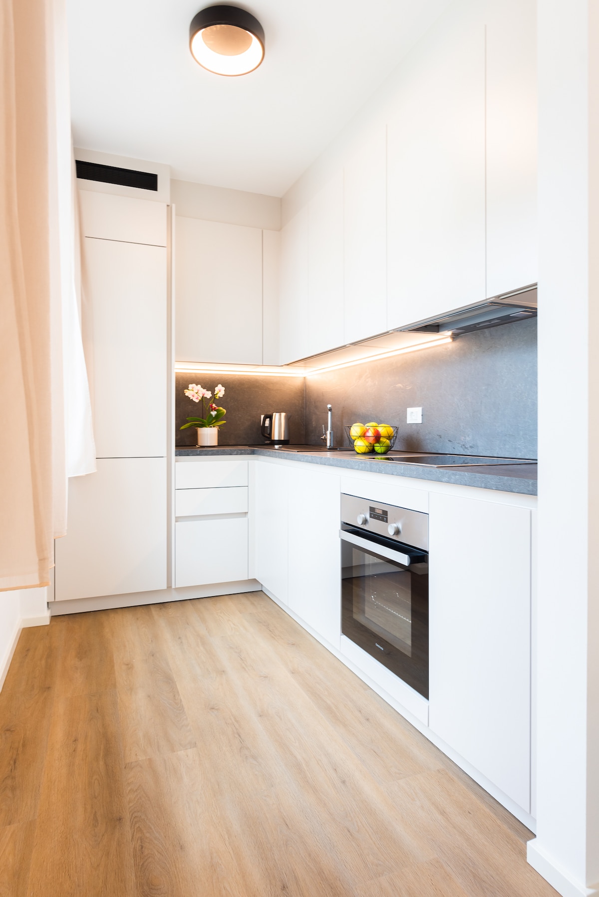 Ovaj elegantni dvosobni stan (57 m²) je u potpunosti renoviran i nudi sve što vam je potrebno za odmor u centru Merana. U ulaznom prostoru se nalazi otvorena garderoba i klupa. Kupatilo ima odličnu tuš-kabinu i WC šolju sa bideom. U dnevnom boravku se nalazi kuhinja sa osnovnim sadržajima, trpezarija i veliki kauč na razvlačenje (180x 200 cm). U spavaćoj sobi se nalazi veliki bračni krevet (180x 200 cm) i otvoreni ormar.