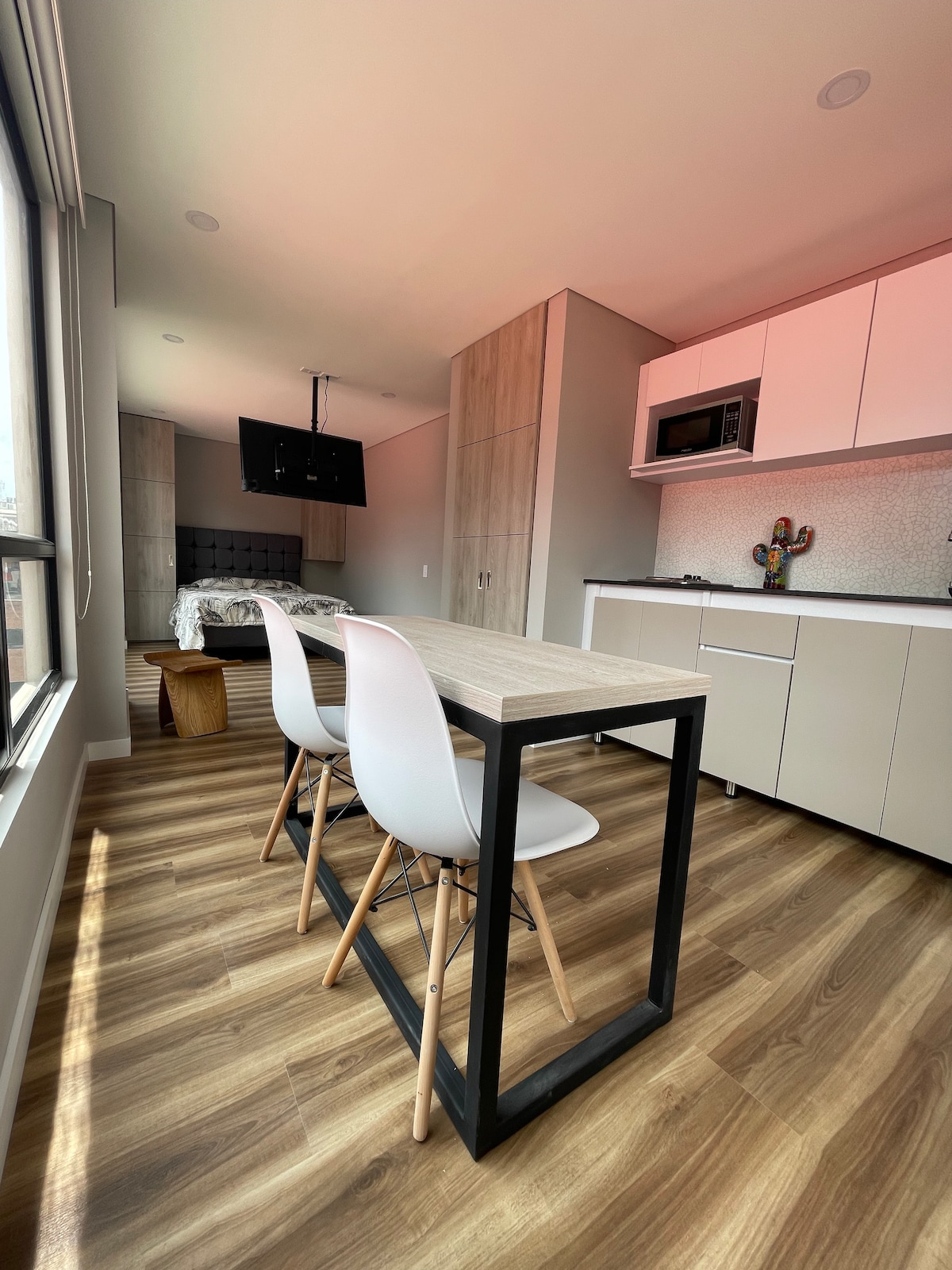 ✨ Welcome to this cozy loft in the heart of Bogotá ✨ Enjoy a bright and modern space with a double bed and a sofa bed, perfect for up to 3 guests. The fully equipped kitchen lets you feel at home, and the bathroom provides all the comfort you need. Relax while watching your favorite series on TV or work comfortably with high-speed WiFi. You’ll be close to cafés, restaurants, and the main attractions of the city ☕🍽️🏛️. Book now and experience Bogotá from the city center! 🌆