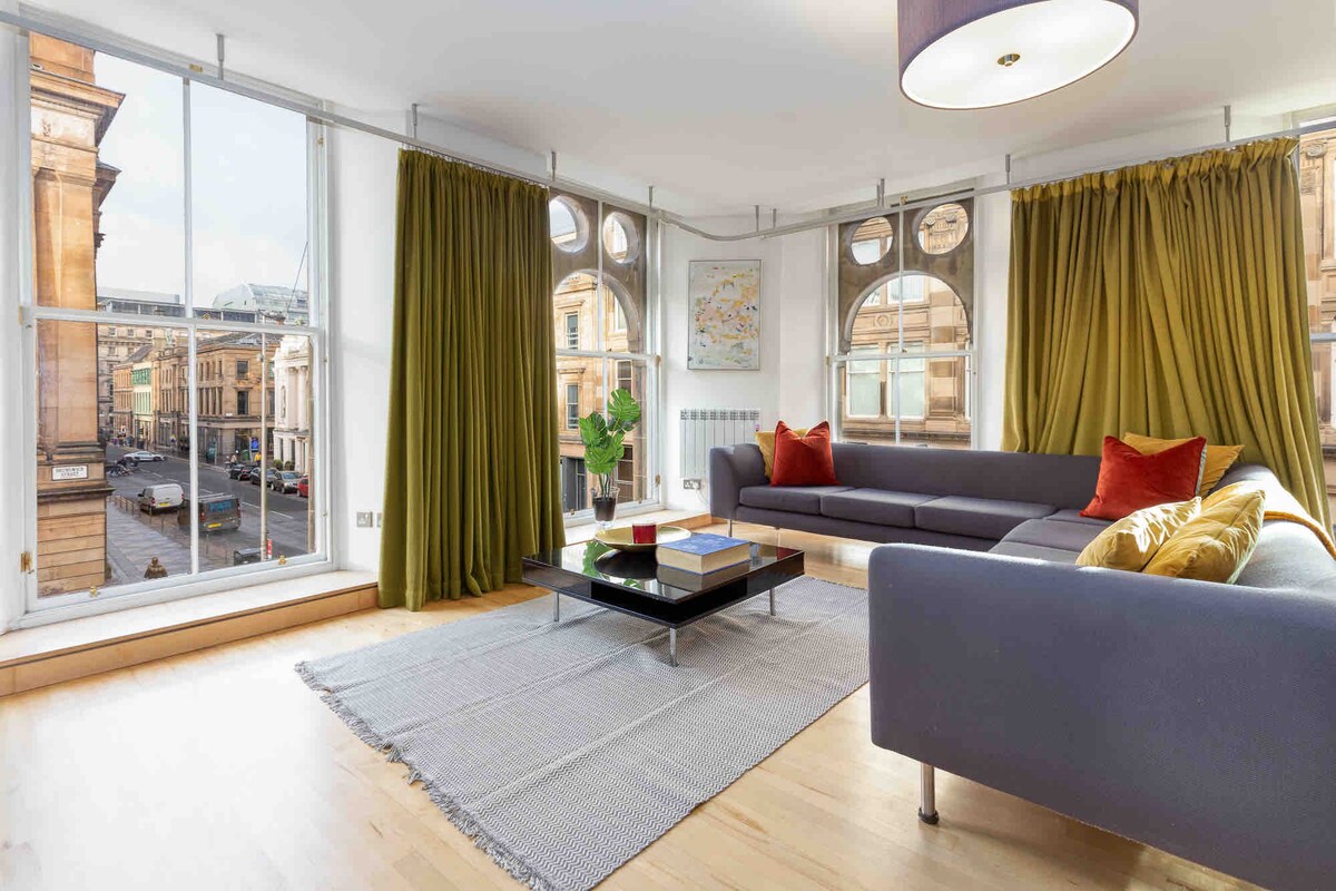 Bang u srcu centra grada, nedaleko od čuvenog Džordžovog trga u Glazgovu. Stan je pogodan za odlične barove i restorane i transportne veze i nalazi se odmah preko puta hotela Ibis Styles, ali nudi odličan smještaj bez hotelske cijene. Ovaj fantastičan stan u prizemlju sa jednom spavaćom sobom je svetao i prozračan, zajedno sa Wi-Fi mrežom i dobro opremljenom kuhinjom, kupatilom i spavaćom sobom. Idealan je za turiste i poslovne ljude koji su udaljeni 5 minuta hoda od stanice Kvin Strit.
