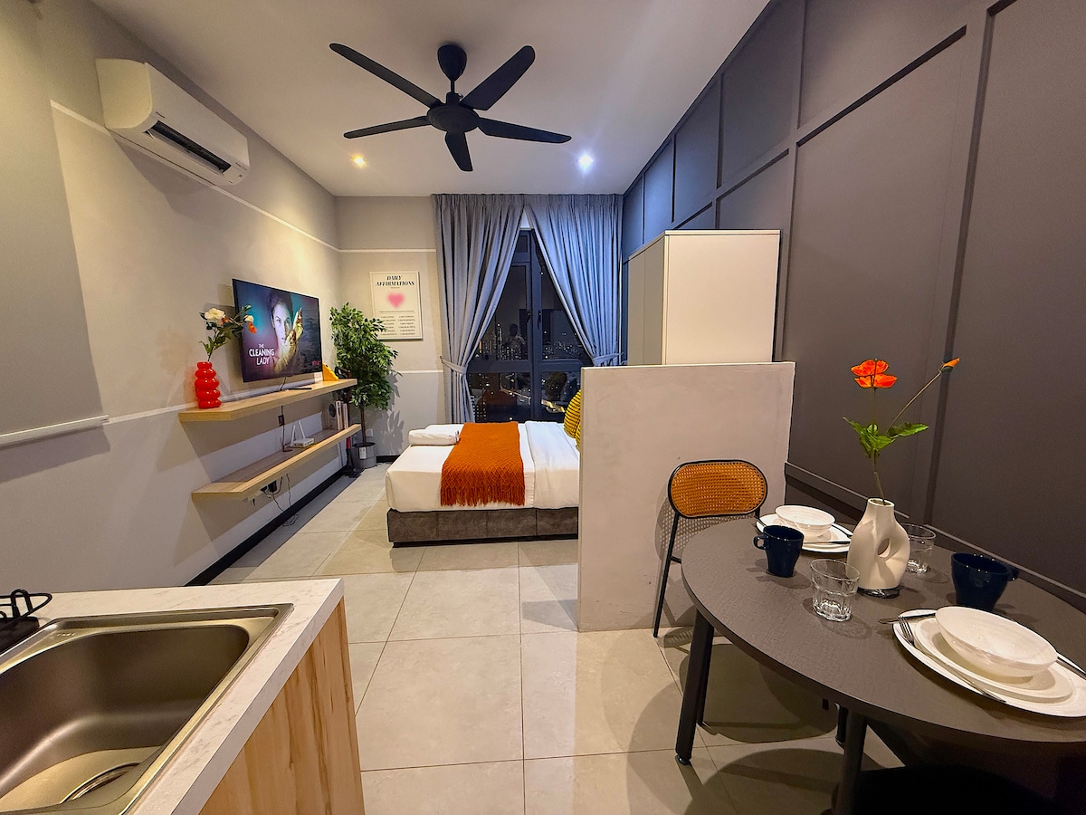 Boravite u srcu Zlatnog trougla KL-a! Opustite se u modernom 1BR apartmanu sa zadivljujućim pogledom na grad, preljevnim bazenom na krovu i potpuno opremljenom teretanom. Savršeno za parove, putnike koji putuju sami i poslovne goste. Koraci od KLCC-a, vrhunskih tržnih centara, restorana i noćnog života.