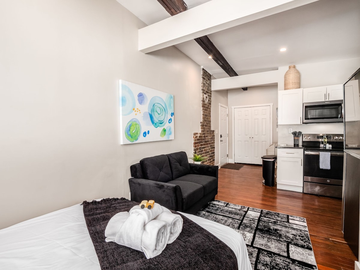 Šarmantan, sveže uspravan stan efikasnosti sa antiknim šarmom i modernim pogodnostima. Parking van ulice, frižider, mikrotalasna rerna i aparat za kafu i privatni ulaz. Elegantno kupatilo sa podom od mozaika i velikom tuš-kabinom. Nalazi se u istorijskom delu grada Olde Taun Ist, eklektičnom delu umetnika, istorijskim vilama. Prilike za restorane i noćni život udaljene su samo nekoliko minuta hoda ili je centar grada udaljen jednostavnom vožnjom Uberom.