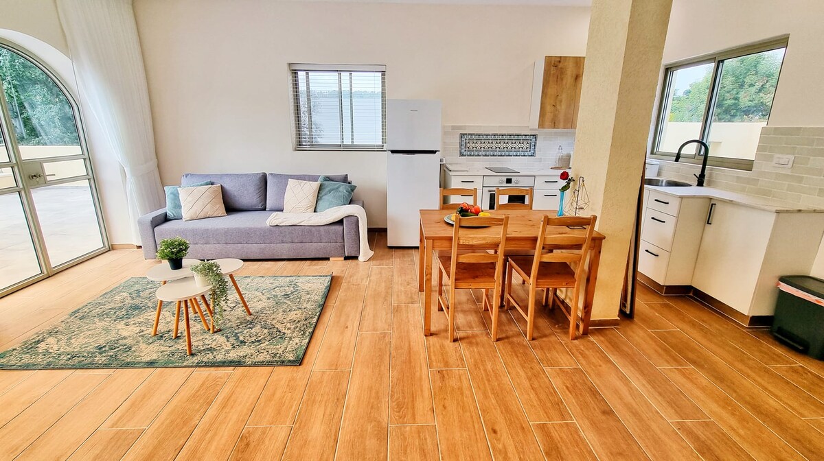 Stan je idealan za parove, samce i poslovne putnike. Ako je potrebno, možete da ugostite dodatnu osobu u stanu. Smeštaj sa saunom i baštom. 6 minuta vožnje do Jerusalima i 25 minuta do aerodroma. Privatna bašta, besplatan parking i blizina Jerusalima i aerodroma čine vaš boravak jedinstvenim - opustite se u sauni nakon putovanja u Jerusalim ili pre/nakon dolaska, na putu za Tel Aviv ili Mrtvo more.