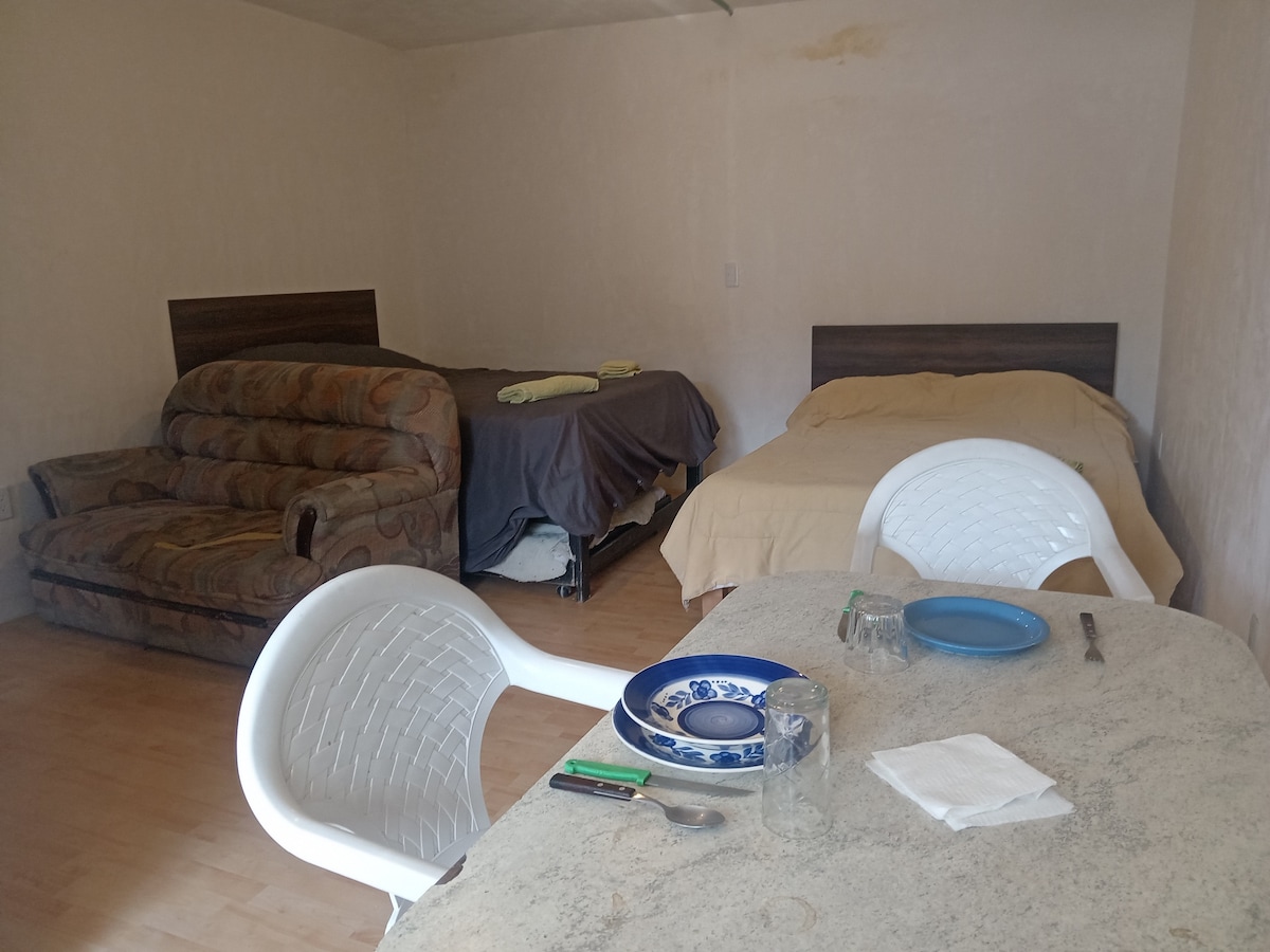 Uživajte u ovom prelepom i novouređenom MiniLoftu u Metepecu. Vrlo dobro se nalazi 4 bloka od bodega aurrera. 5 minuta do gradskog trga, 10 minuta do galerija Metepec, 13 minuta do galerija Toluca. 20 minuta do Međunarodnog aerodroma Toluca. 5 minuta do Starbucksa, svih banaka. 10 minuta do sonora roštilja, suši rol, krila. Ima sobu sa bračnim krevetom i kaučem na razvlačenje koja čini bračni krevet. Kupatilo sa tušem, kuhinjom i barom.