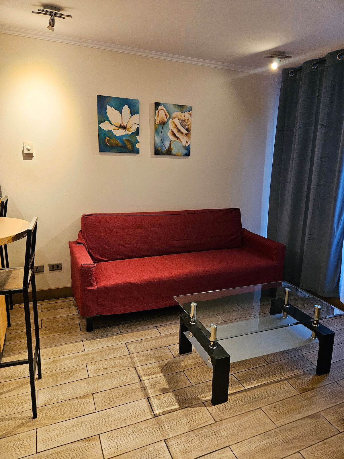 Dobro došli u naš apartman u Las Kondesu. Smešten u jednom od najboljih kvartova u Santijagu, MUT je udaljen samo nekoliko koraka, a Costanera centar je udaljen 5 minuta hoda. U blizini restorana, prodavnica i turističkih atrakcija. Naći ćete sve potrebne sadržaje da biste se osećali kao kod kuće. Opremljena kuhinja, udoban bračni krevet i prijatna atmosfera. Možete da uživate u našem bazenu i pogledu sa krova od kog zastaje dah. Besplatan parking, u zavisnosti od dostupnosti i prethodne koordinacije.