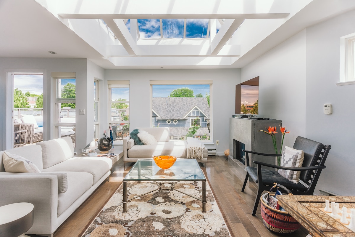 Experience the best location to explore the highlights of Vancouver and Granville Island. Enjoy your spacious, quiet and comfortable private suite within our home. Situated in a park like setting in the city center, right at Granville Island, with it's Public Market, shops, galleries, artisan district, and performance venues. Many restaurants & bars to explore in our safe, walkable friendly neighborhood. After a full day return home & relax by the wall to wall windows in your private suite.