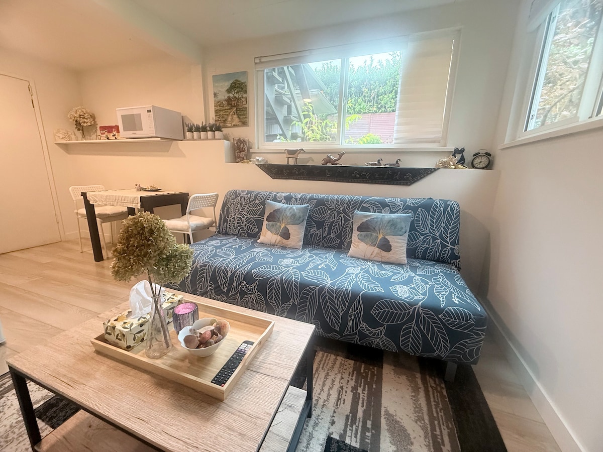 + Private entry, living room, bedroom, Kitchenette, bathroom with nothing is shared + Quiet and cozy garden suite that feels just like home + Excellent indoor ventilation and natural lighting + Spacious, green, and private backyard for relaxation + Only 10 minutes to forest trails, water sports, winter skiing, and shopping + Just 20 minutes to downtown Vancouver or nearby cities + Perfect for individuals or couples