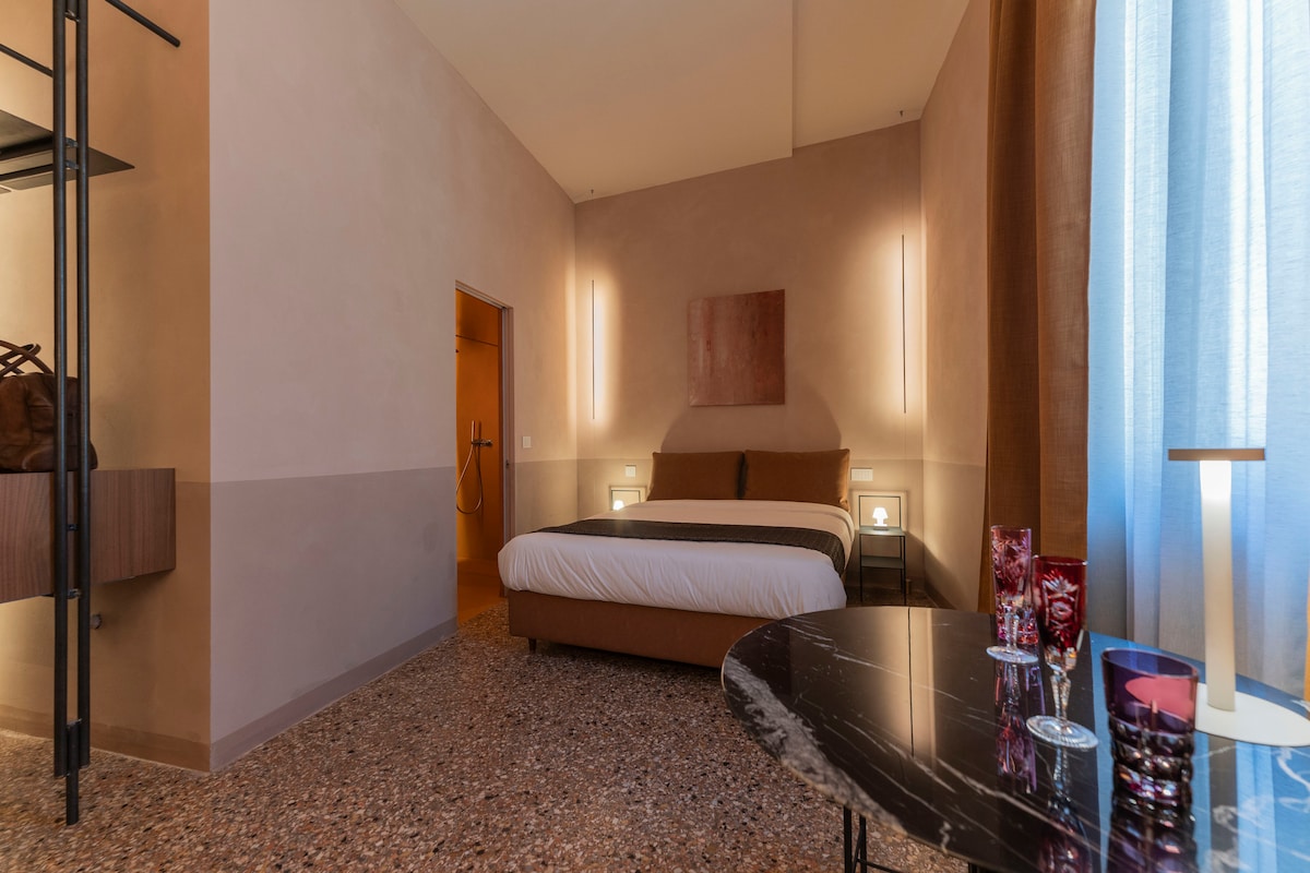 Studio 306 u Palati Arhimede nudi privatnu terasu u istorijskom centru: redak otvoreni prostor u Bolonji, savršen za odmor na otvorenom nakon grada. Unutrašnjost uključuje kuhinju za piknik (kuvalo, mini-frižider, aparat za kafu) idealnu za brze pripreme, trpezarijski sto i bračni krevet, inteligentno raspoređene kako bi se maksimalno povećala udobnost i funkcionalnost. Prostor je jednostavan za tumačenje i život, savršen za kratak odmor.