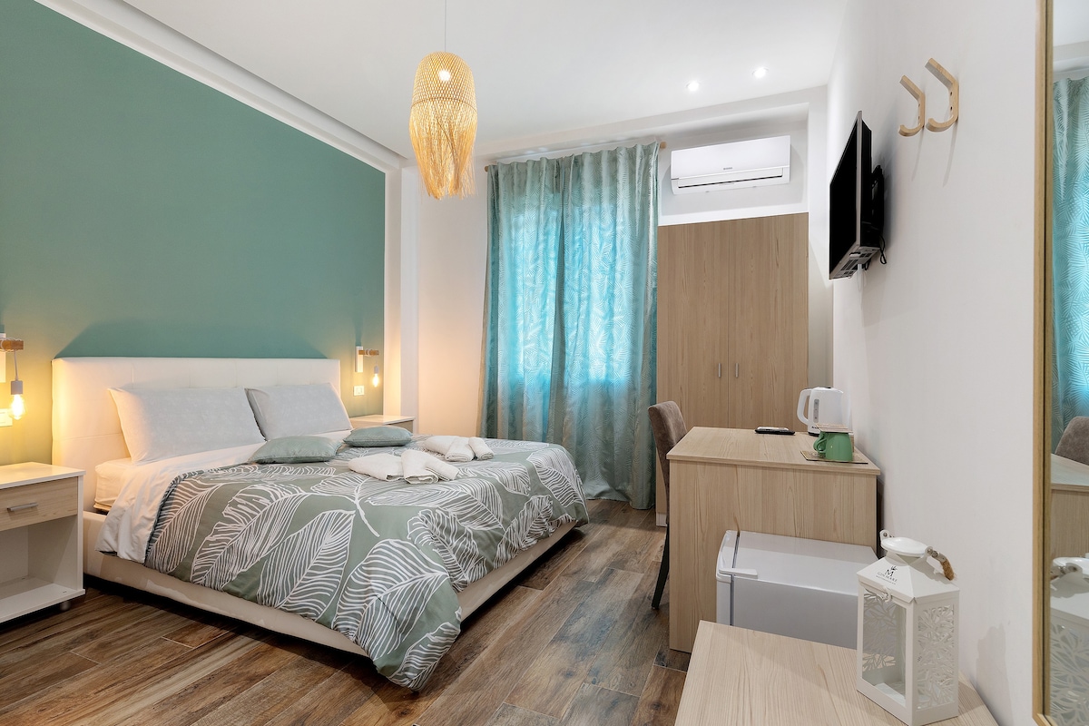 Welcome to our cozy structure located in the heart of Terrasini, just a 2-minute walk from the main square and 5 minutes from the sea. This double room is the ideal solution for short stays. Equipped with a private bathroom, Wi-Fi, air conditioning, hairdryer, set of towels and sheets. Intimate, functional and independent, for those looking for essential comfort in a perfect location.