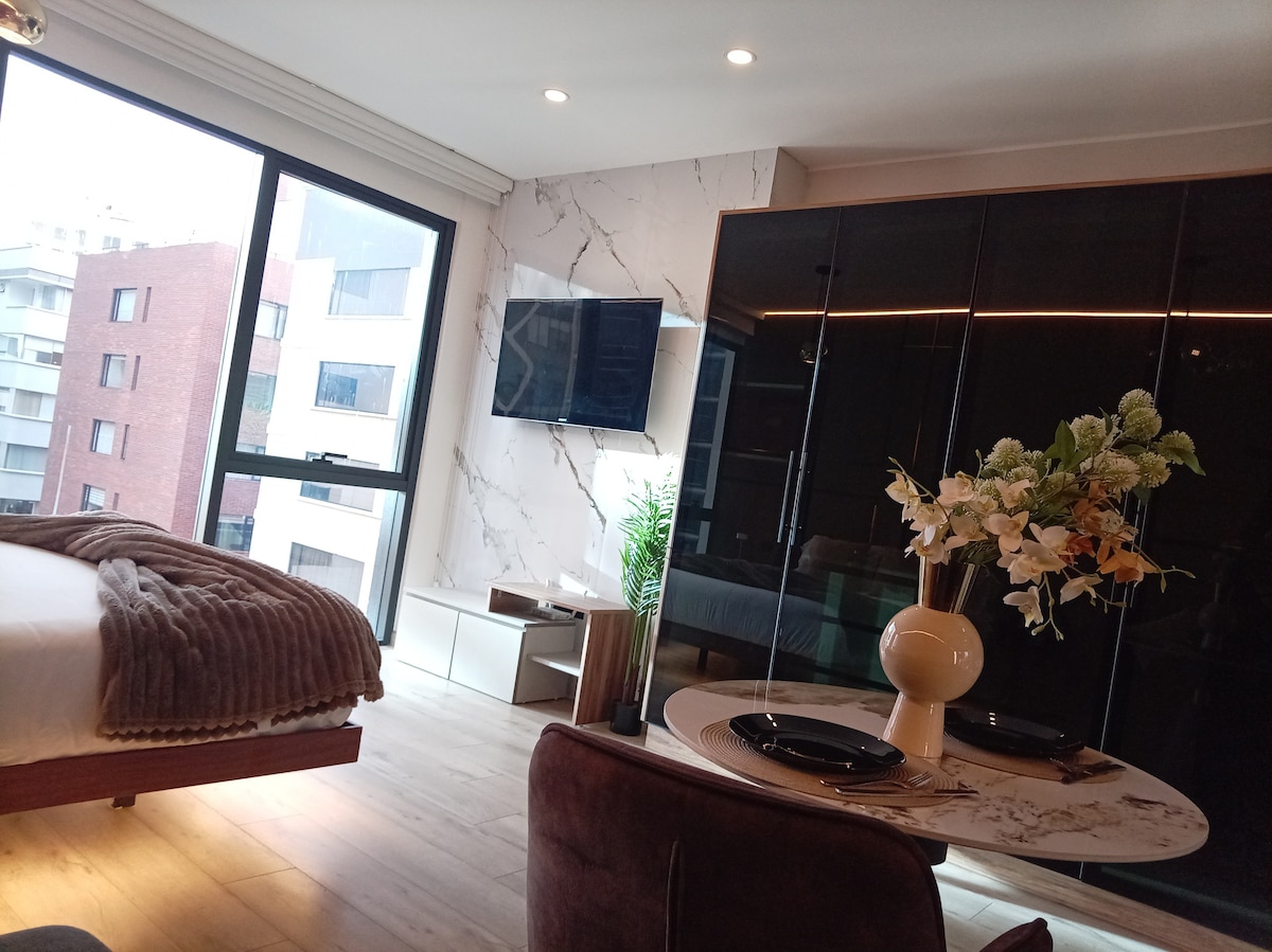 Rating 4.99 ⭐⭐⭐⭐ - Top 5 best-rated in all of Quito. Electric generator ⚡ and we issue invoices!! Very cozy 😊, bright, fully equipped, and super well located. You won’t share it with anyone else! Located in the north-central area of Quito, 1 block from La Carolina Park, El Jardín Mall 🛍️, the Chamber of Commerce, and the Metro 🚇. Close to Quicentro and CCI Mall. Banks 🏦 and restaurants on a quiet street. Flexible check-in ⏰. Gym 🏋️, co-working 💻, game room 🎲, BBQ 🍖& jacuzzi 🛁