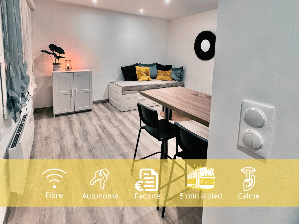 Besoin de détente et relaxation en amoureux(ses)? Dans ce cas le Stud & Spa est fait pour vous ! Un véritable Spa sous une véranda chauffée/climatisée pour en profiter par tous temps, un studio meublé avec charme et un patio privatif avec salon de jardin. Linge de lit, toilette et de bain sont inclus. Savon, shampooing et liquide vaisselle à votre disposition. Le logement se situe à 3km du centre-ville et 1km de la Loire. 2 arrêts de tram vous conduiront en 10 minutes dans l’hyper centre !