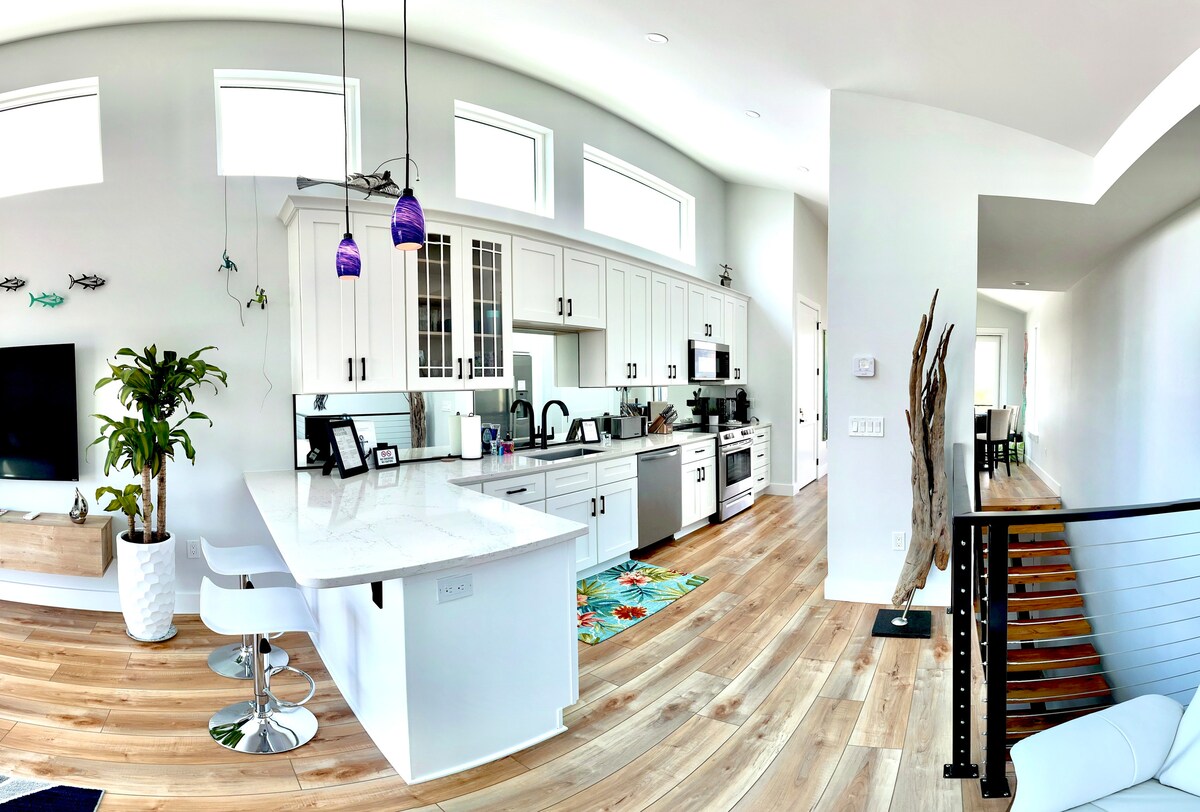 Potpuno nova izgradnja završena 2024. godine - Outlook on Oleander. Samo 90 sekundi hoda do prilaza plaži u 4. ulici. Tri sprata za veličanstven pogled! Naša porodica ima dom u Meksiko Biču od 70-ih i ponosni smo što smo obnovili post Majkl! Uživajte u zaboravljenoj obali i pobjegnite od svega. Snježne ptice su dobrodošle. Zbog rasporeda našeg doma, gosti mlađi od 8 godina se ne preporučuju. Postoje 3 sprata - kuhinja/stambeni prostor na trećem spratu.
