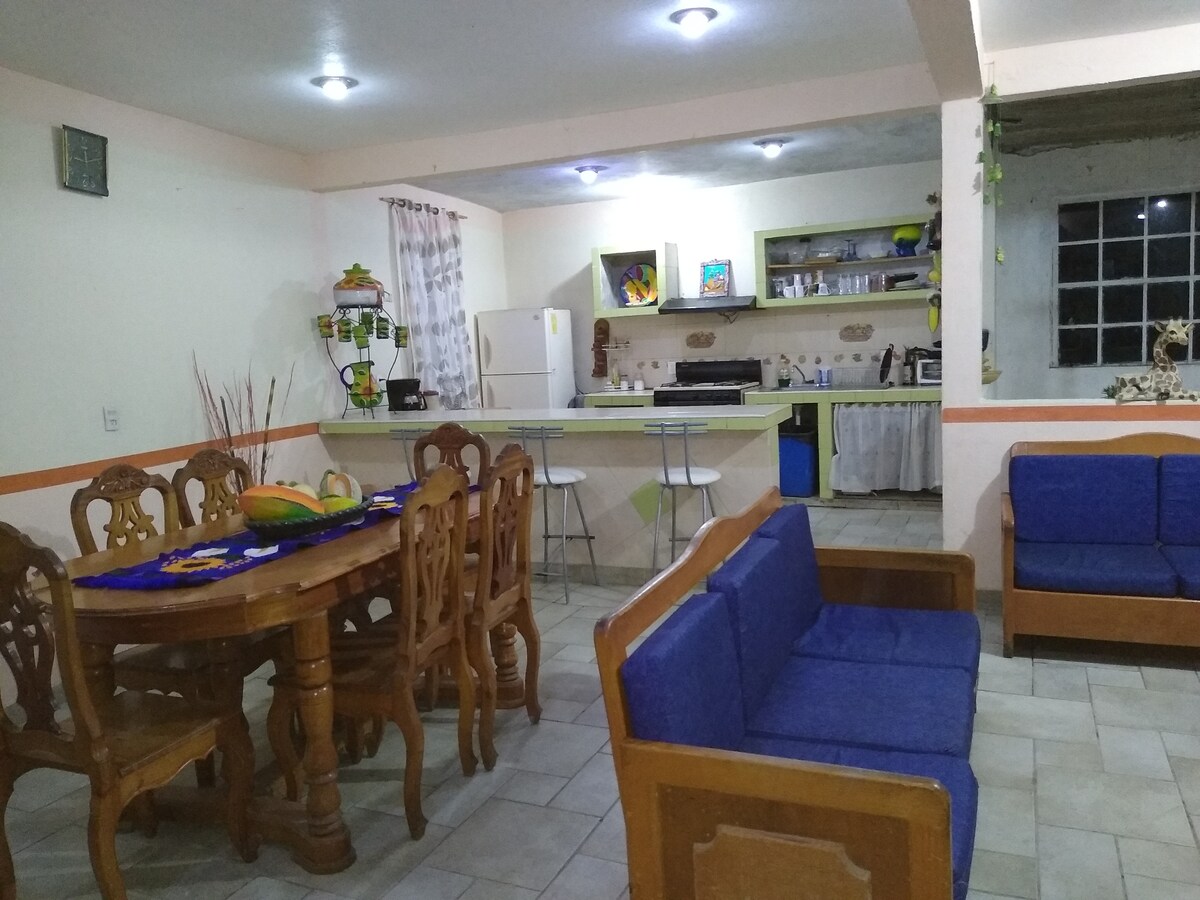 Casa de campo, rodeada de bosque y áreas verdes, con todos los servicios. Capacidad para 6 personas. El precio por noche es para dos personas; huéspedes adicionales (de 3 a 6 ), tienen un cargo adicional de $480 /persona / noche. Jue y vie santo, 24, 25 y 31 de dic y 1 de enero se incrementa 30% ($585) Servicio de wifi con cargo adicional * Ver detalles en: Información de la propiedad / limitaciones de servicios / Cosas que tus huéspedes deben saber Costo adicional: Internet y leña