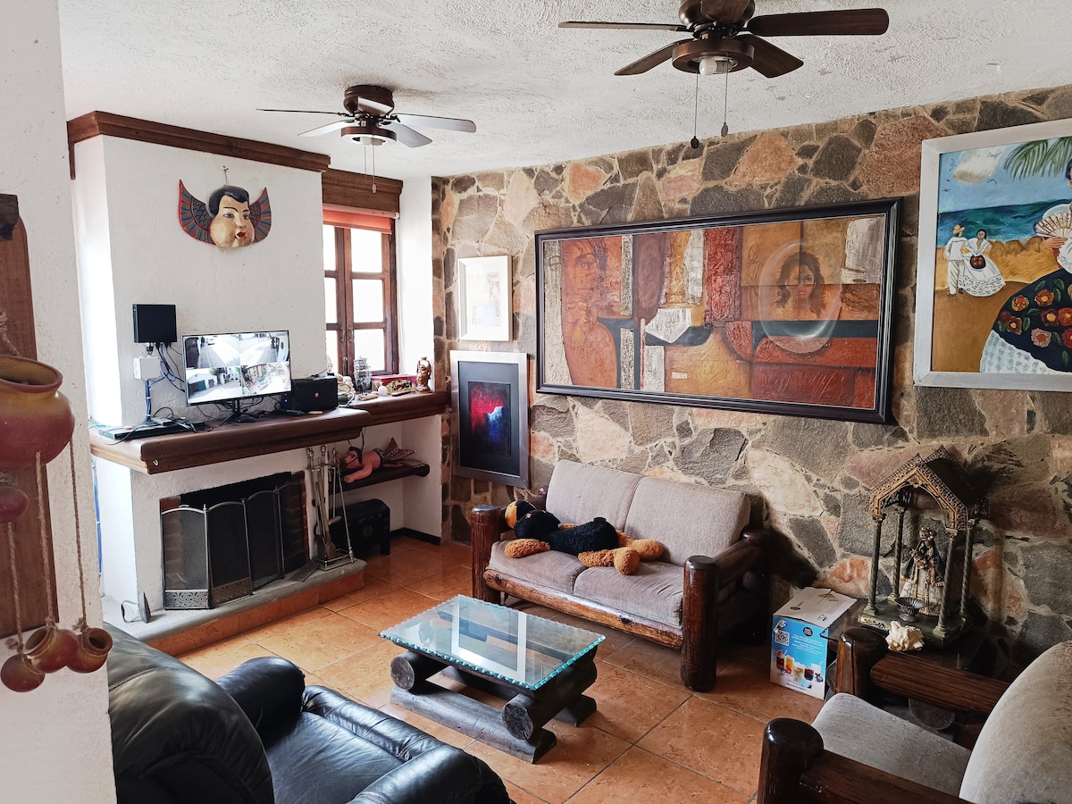 Casa con decoración campirana, muy cómoda, rodeada de la naturaleza y hermoso paisaje. Ideal para la convivencia, el descanso y la recreación. Ideal para pasar un fin de semana, retiros, vacaciones con la familia. Lugares cercanos a visitar: Pueblo de Villa del Carbón, Parque Nacional Cumbres Sierra Nevada, Bioparque Estrella, Presa del Llano, Presa Benito Juárez, Arcos del Sitio.
